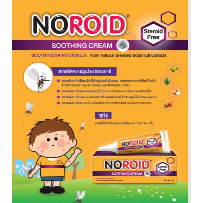 Noroid Soothing Cream 5gm ครีมทาหลังยุงกัด สำหรับเด็กเล็ก ไม่ผสมสเตียรอยด์ โนรอย ครีมยุงกัด #605