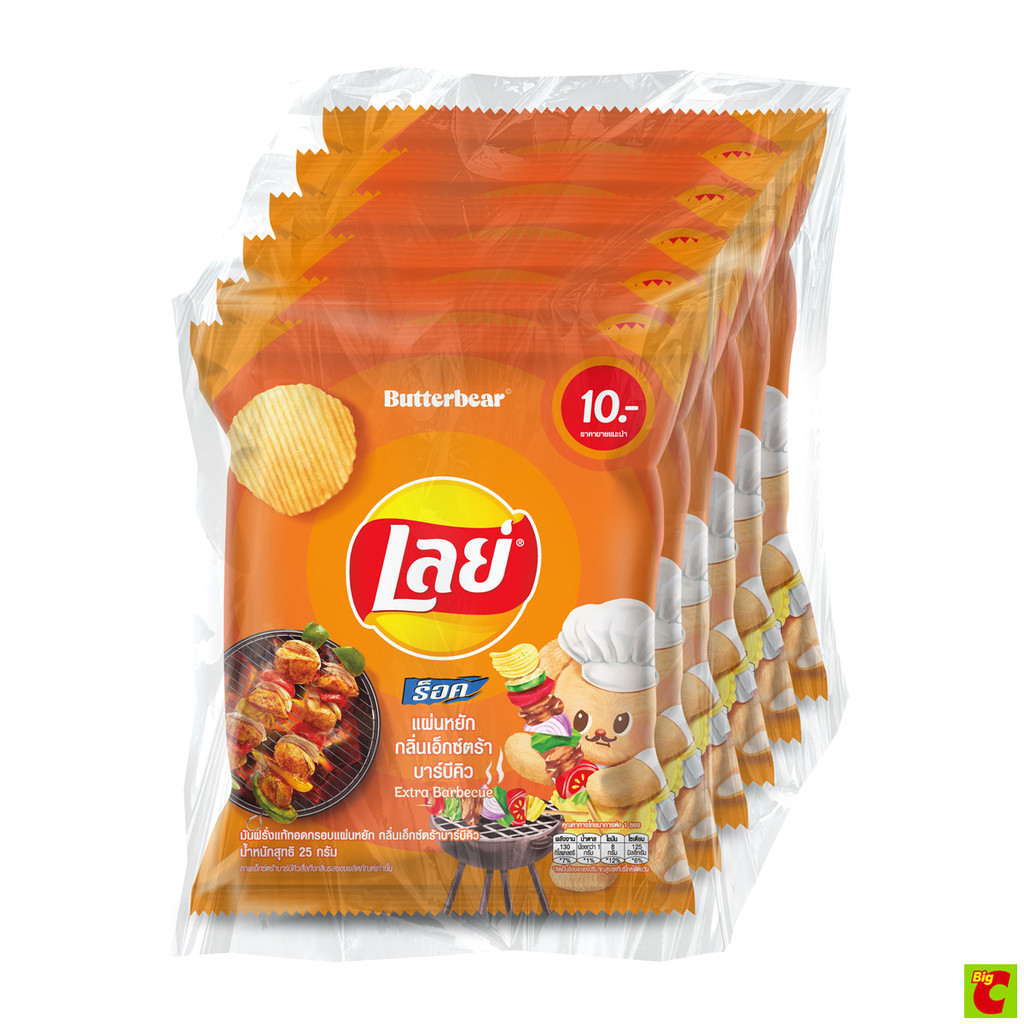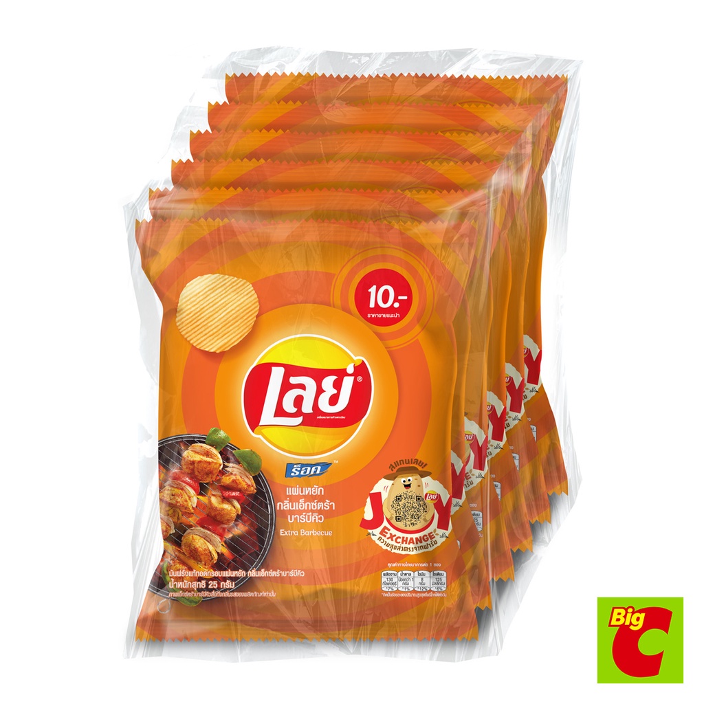 เลย์ ร็อค มันฝรั่งแท้ทอดกรอบแผ่นหยัก กลิ่นเอ็กซ์ตร้า บาร์บีคิว 25 ก. แพ็ค 6