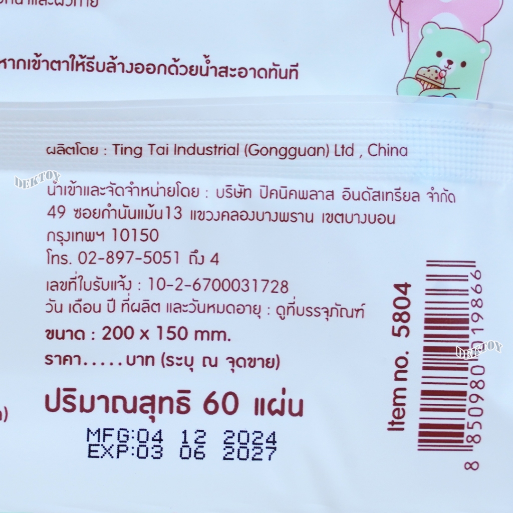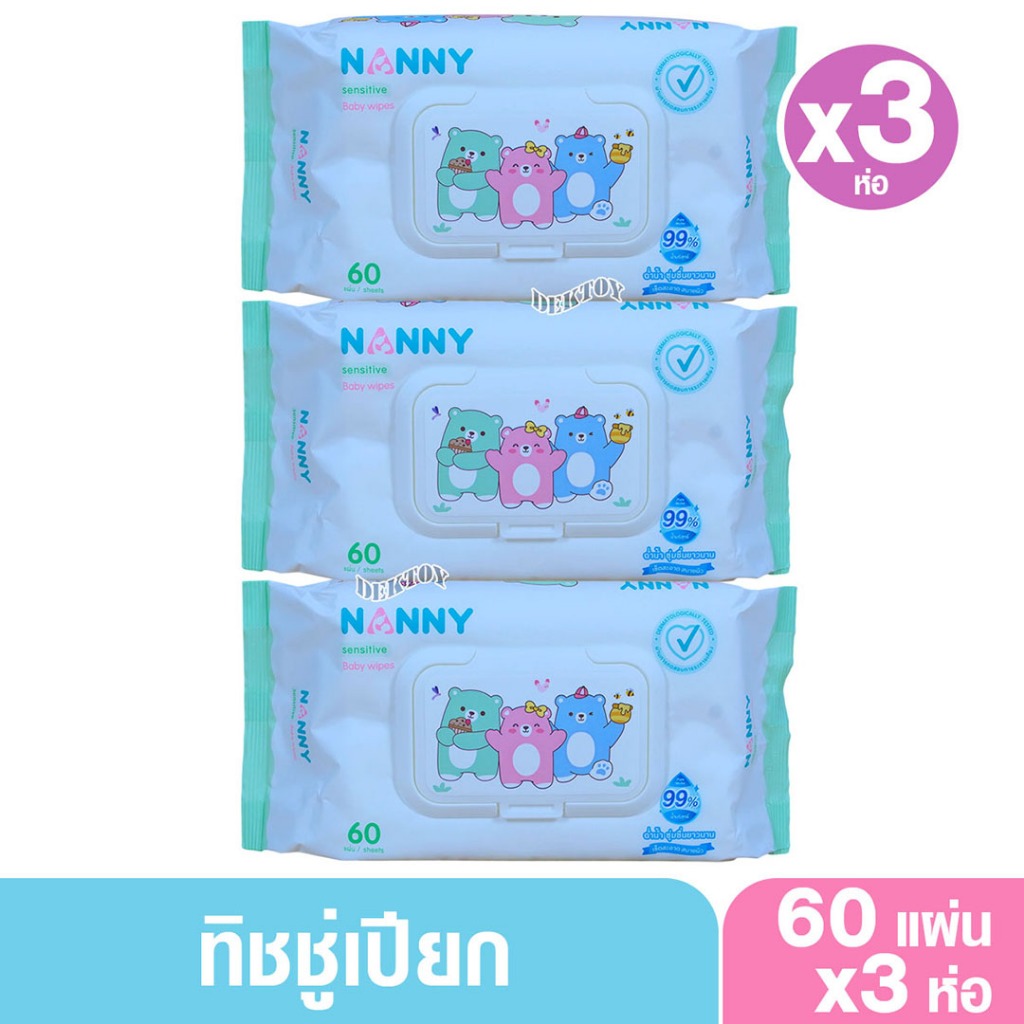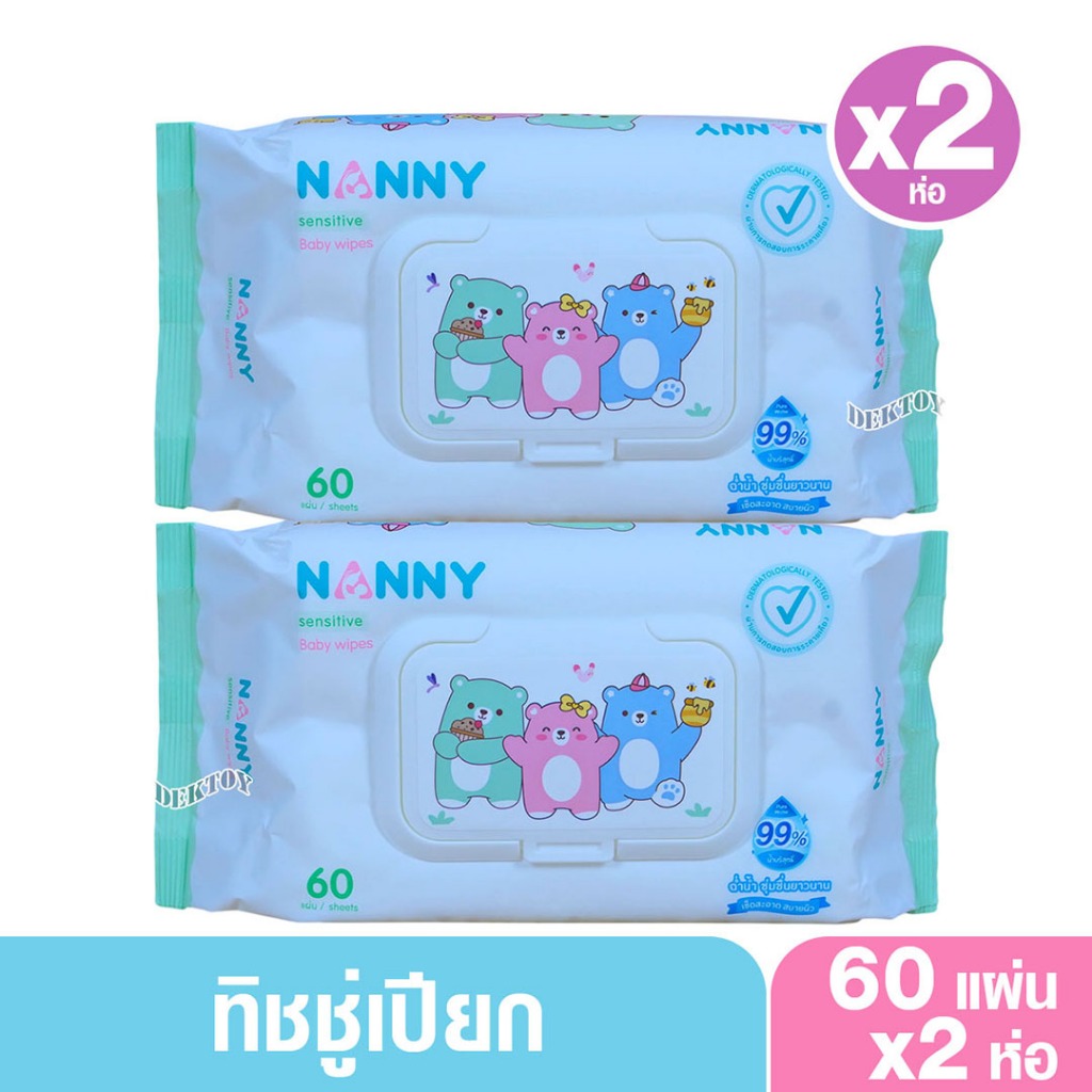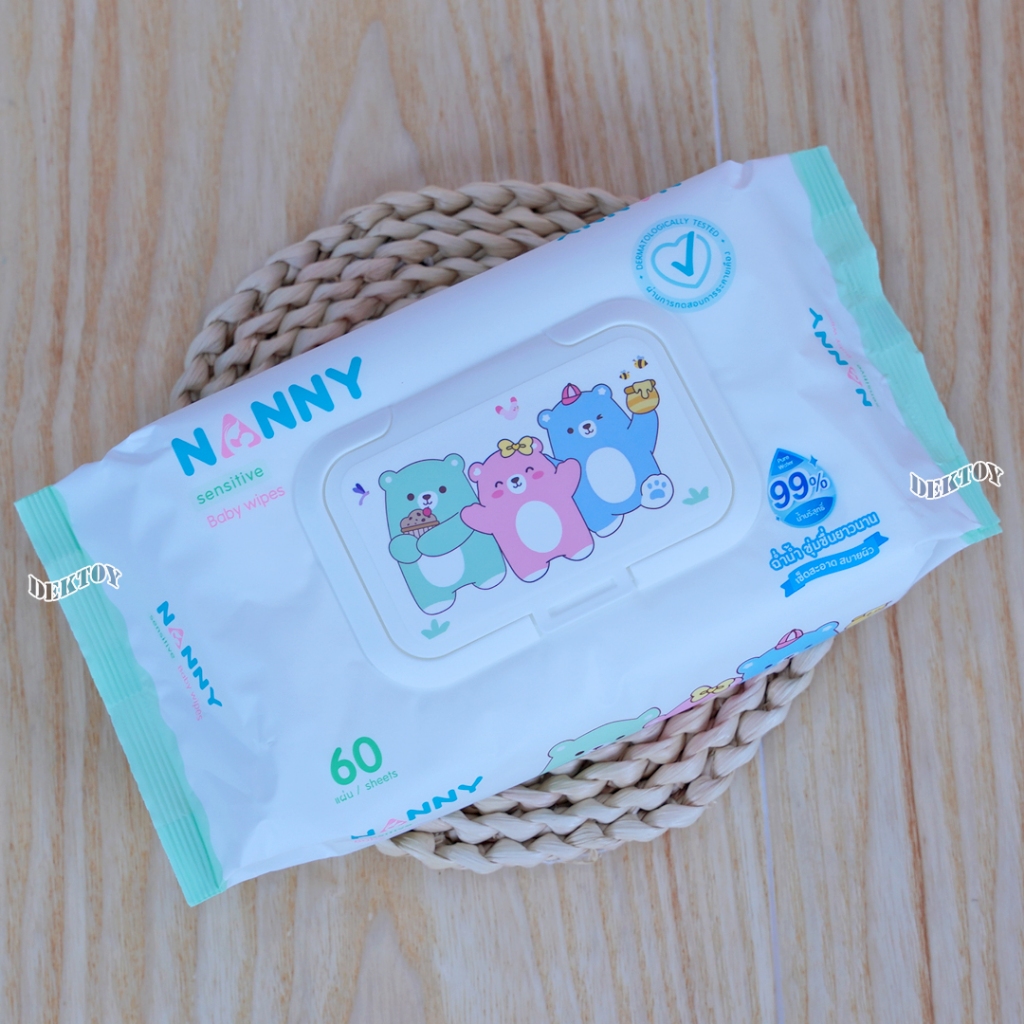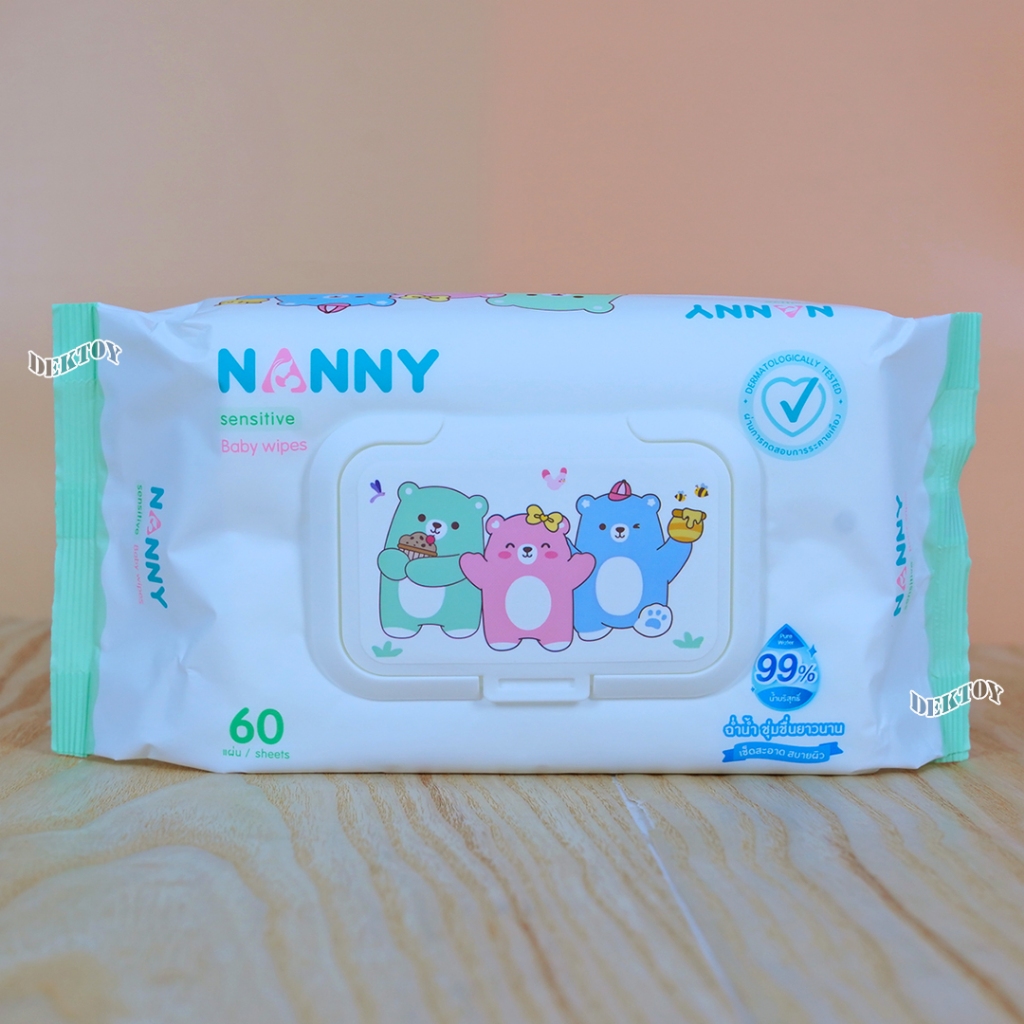 NANNY แนนนี่ ทิชชู่เปียก เบบี้ไวพส์แนนนี่ 60 ชิ้น สูตรน้ำบริสุทธิ์