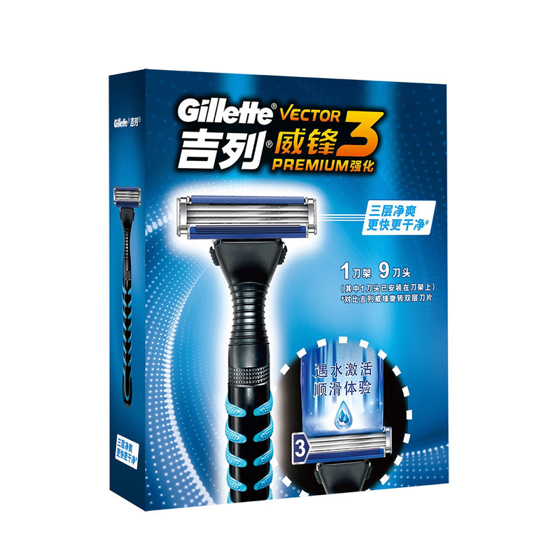 Gillette Razor Vector 3 Premium Razor Set 1 Handle 9 Blades Sharp และทนทานมีดโกนโกนหนวดสําหรับผู้ชาย