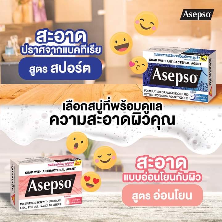 สบู่ ASEPSO อาเซปโซ สบู่ก้อน สบู่อนามัย ลดแบคทีเรีย บำรุงผิว 80g
