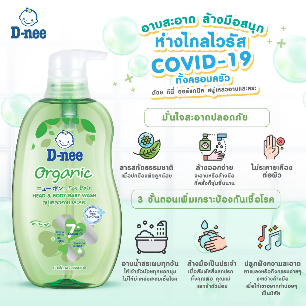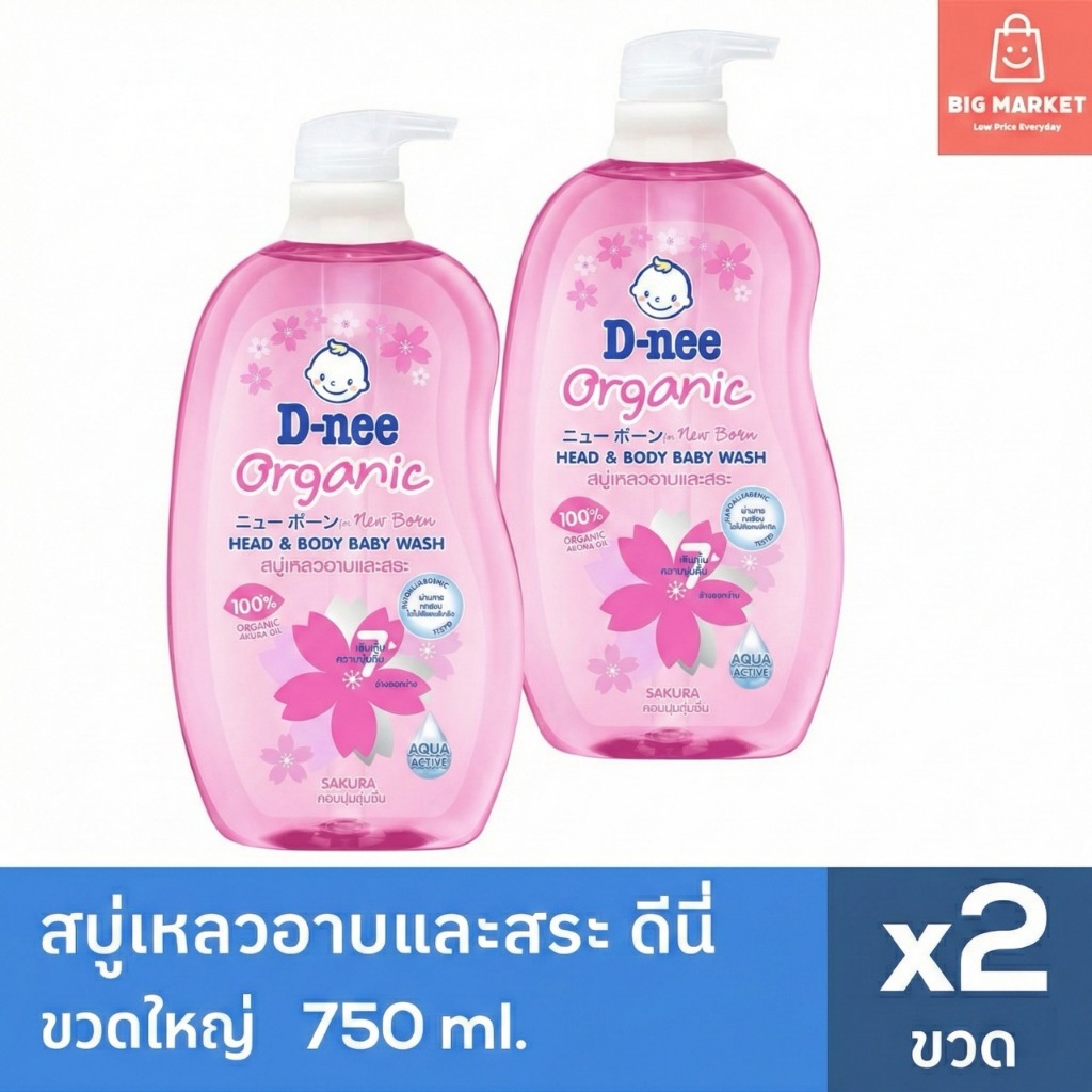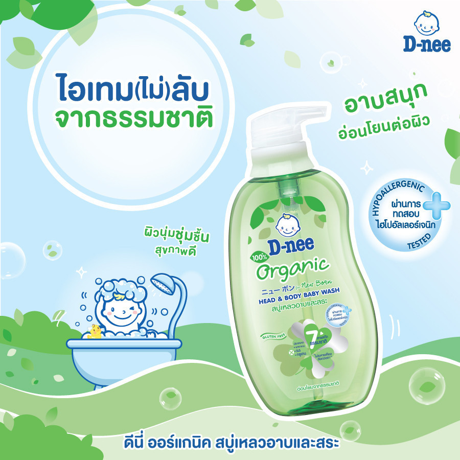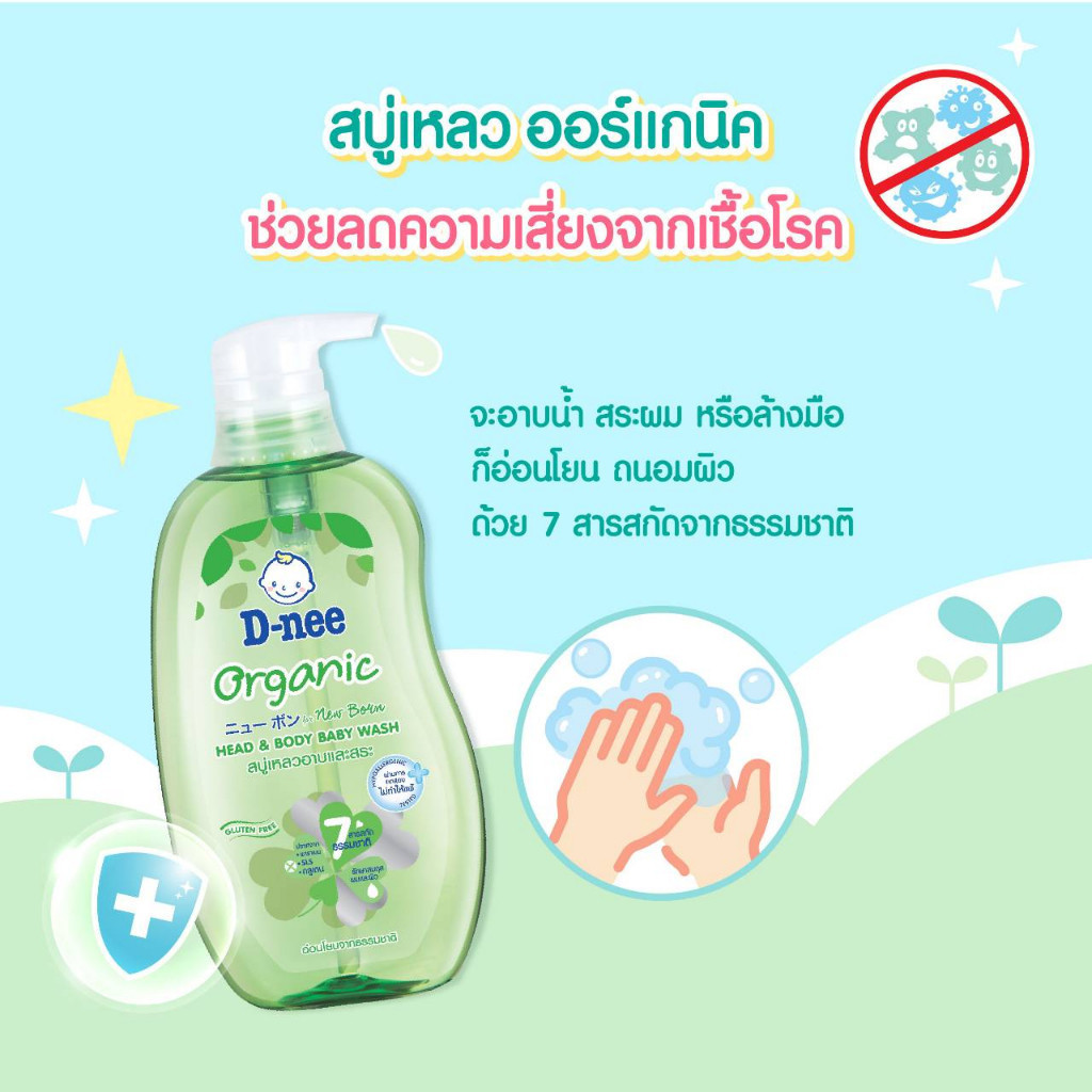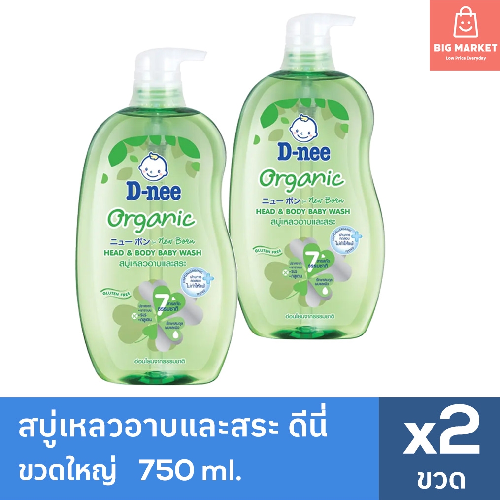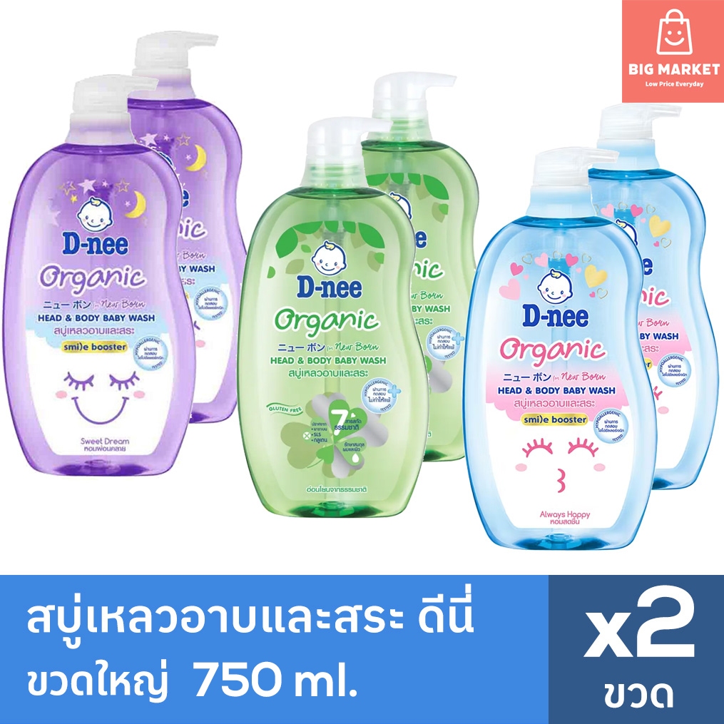 D-nee สบู่เหลวอาบและสระเด็ก ดีนี่ นิวบอร์น ออร์แกนิค สบู่และแชมพู ขวดใหญ่ 750ml 2 ขวด Organic สีเขียว ม่วง ฟ้า