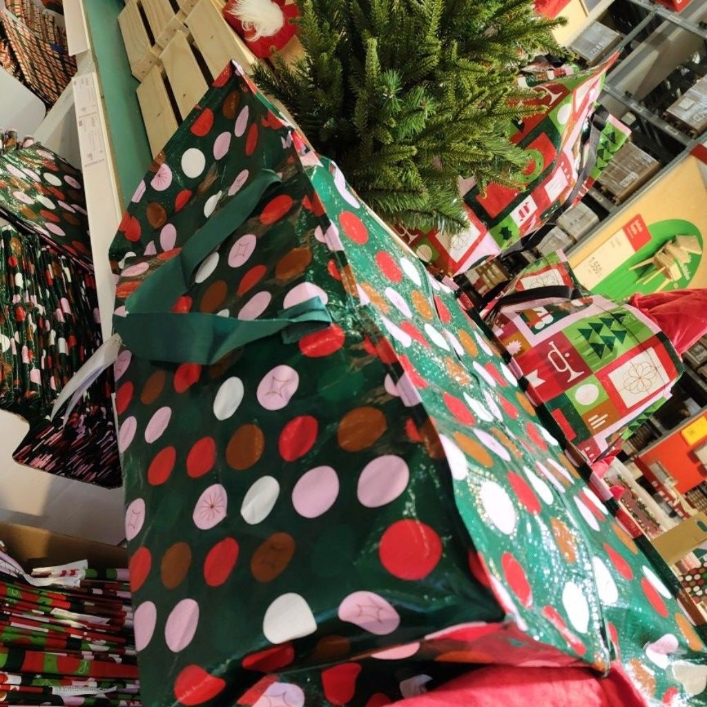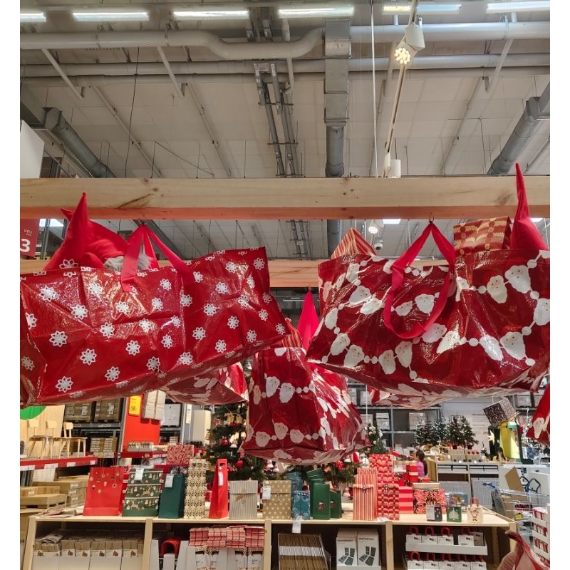 กระเป๋าคริสมาส ลายซานตาคลอส ถุงหิ้ว กระเป๋าสะพายข้าง ถุงมีซิป อิเกีย อีเกีย Ikea