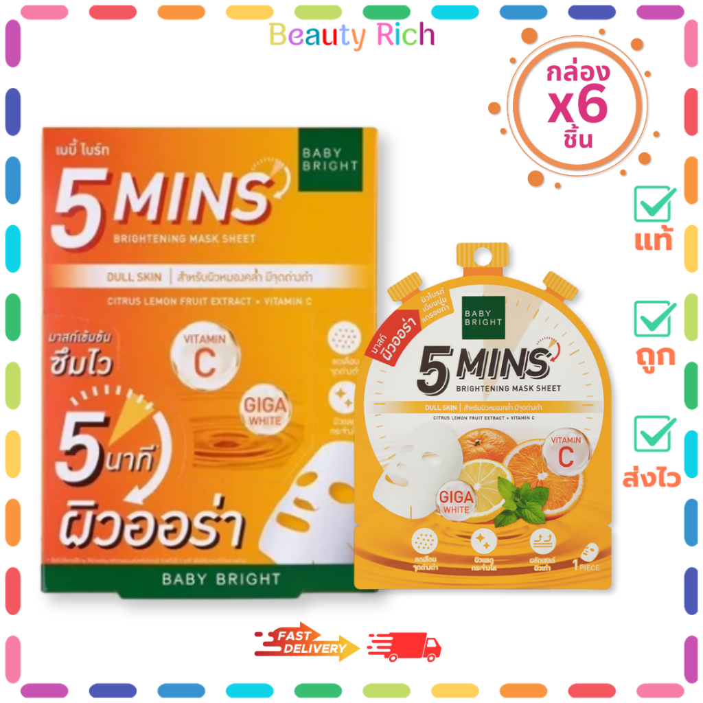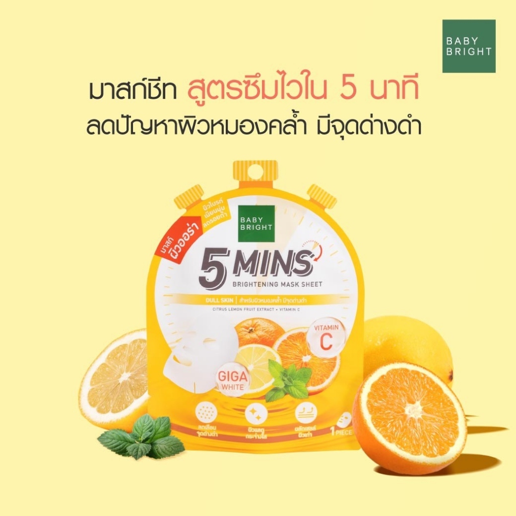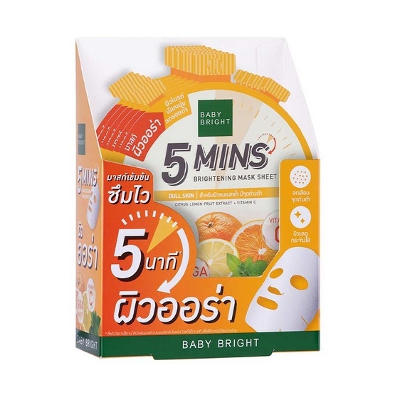 (กล่อง 6 ซอง) Baby Bright Brightening Mask Sheet (สีส้ม) เบบี้ไบร์ท 5 นาที (18 g.)