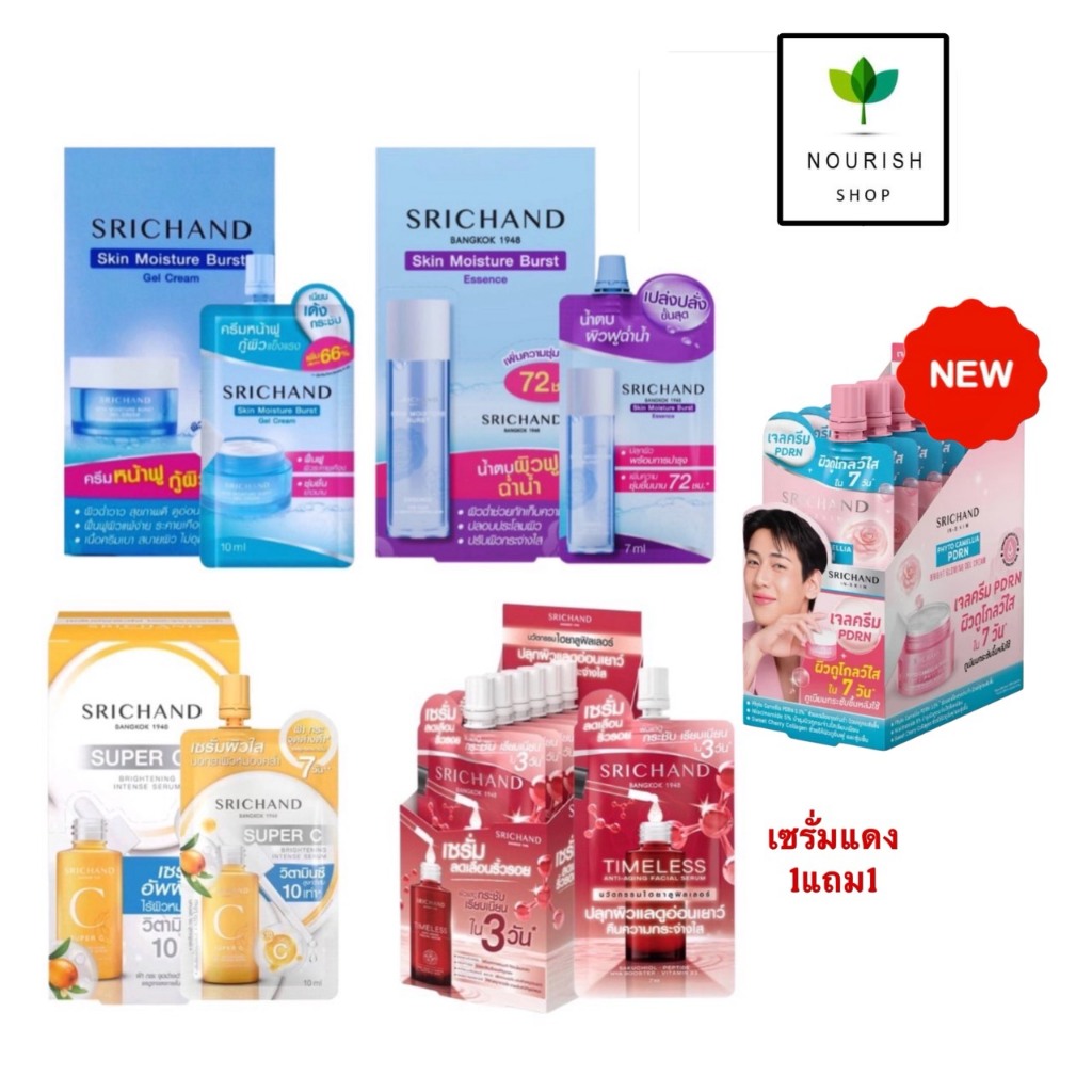 (ยกกล่อง / 6 ซอง) ศรีจันทร์ มอยส์เจอร์ เบิร์ส เจลครีม / ซุปเปอร์ ซี ไบร์ทเทนนิ่ง เซรั่ม Srichand Skin Moisture Burst