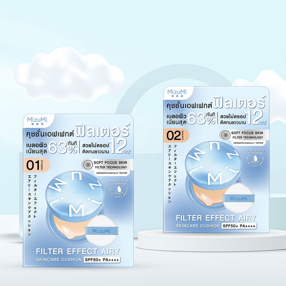 MIZUMI มิซึมิ ฟิลเตอร์ เอฟเฟกต์ แอร์รี่ สกินแคร์ คุชชั่น SPF50+ PA++++ 4 กรัม.(มีให้เลือก 2 เฉดสี)
