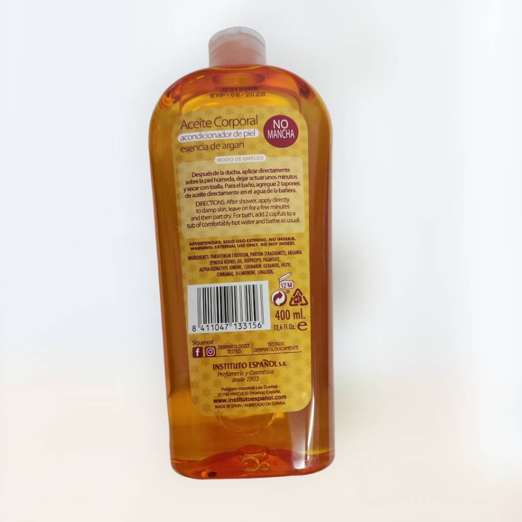 ✅ Instituto espanol argan essence body oil 400ml.บอดี้ออยล์บำรุงผิวจากอาร์แกน