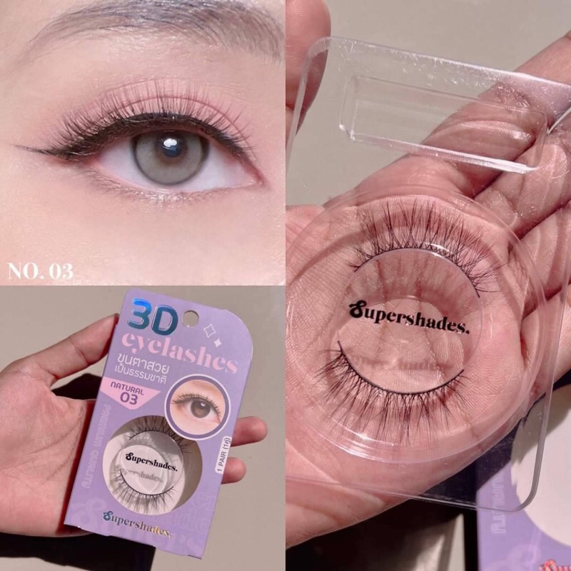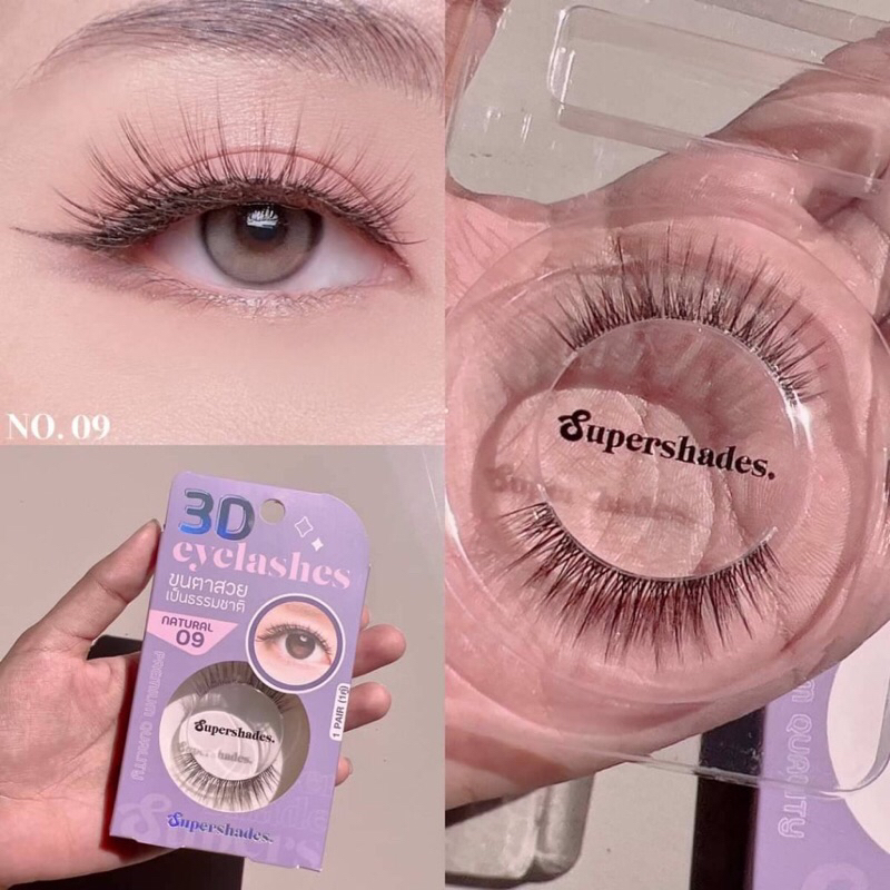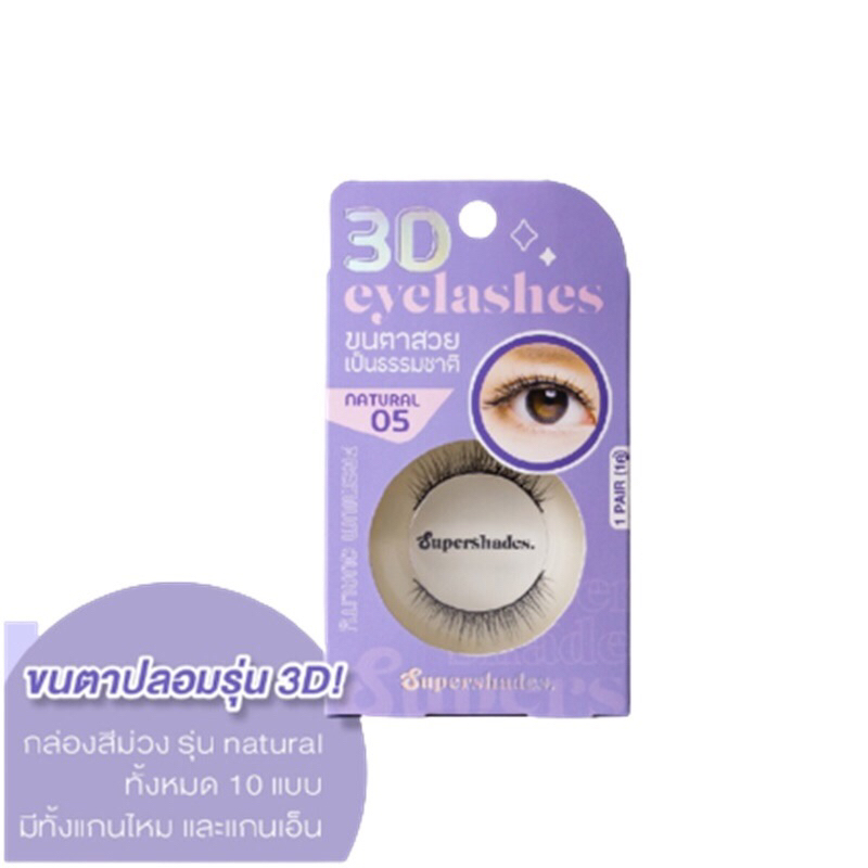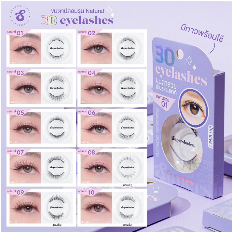 SUPERSHADES ขนตาปลอม 3D กล่องชมพู,ม่วง(พร้อมกาวในตัว) ทั้งหมด 10 แบบ ขนตาตาโต ขนตาแบบจีน ขนมีทั้งแกนไหมและแกนเอ็นไม่เจ็บ