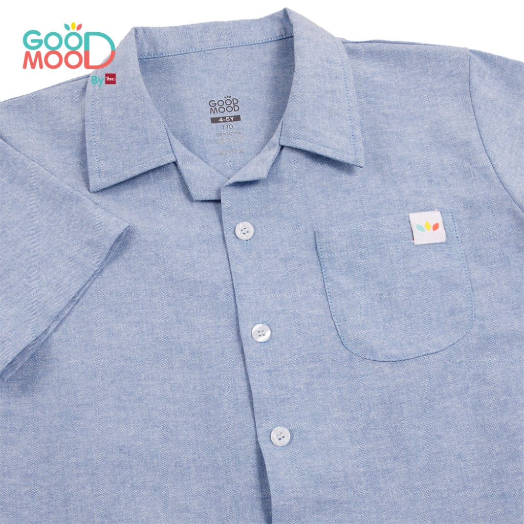 Good Mood by bsc เสื้อฮาวาย สีน้ำเงิน สำหรับเด็กอายุ 4-5 ปี ผ้า Oxford