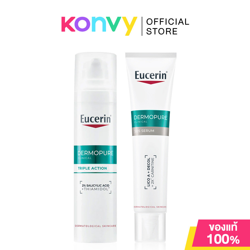 Eucerin Set 2 Item Triple Action 40ml + SOS Serum 40ml ยูเซอริน เซทผลิตภัณฑ์ดูแลผิว สำหรับผิวมันเป็นสิว.