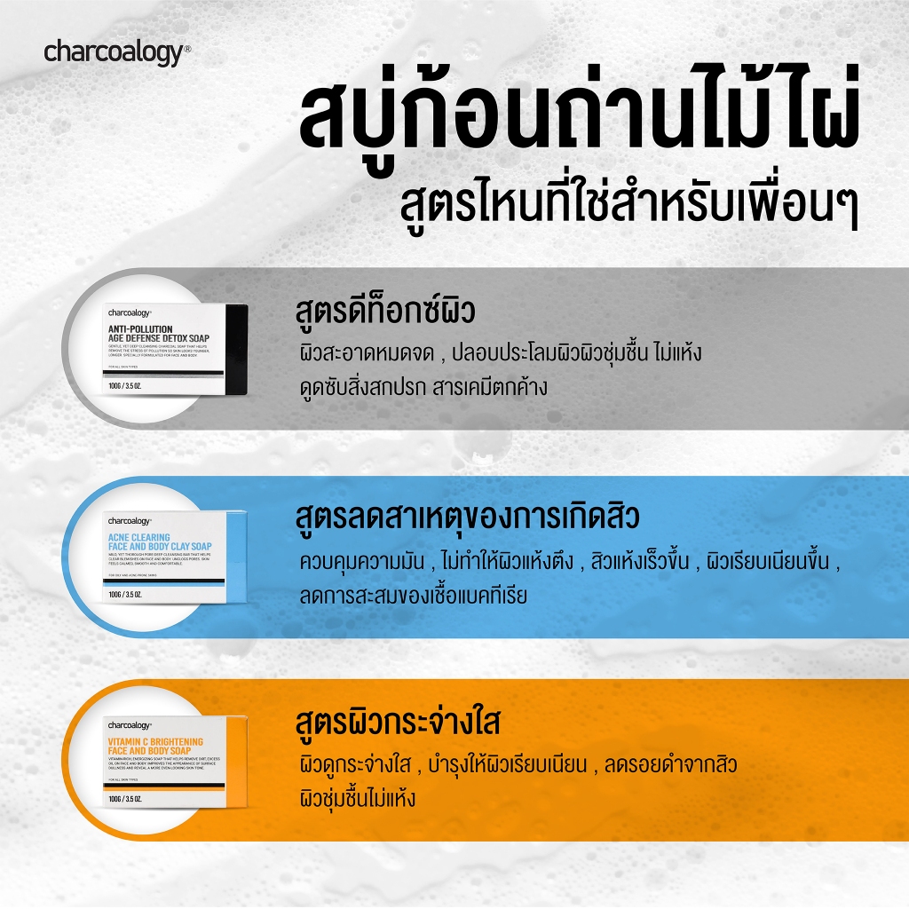 Charcoalogy ชาร์โคโลจีสบู่ก้อนถ่านไม้ไผ่ สูตรปกป้องผิวจากมลภาวะ Anti-Pollution Age Defense Detox Soap (100g)