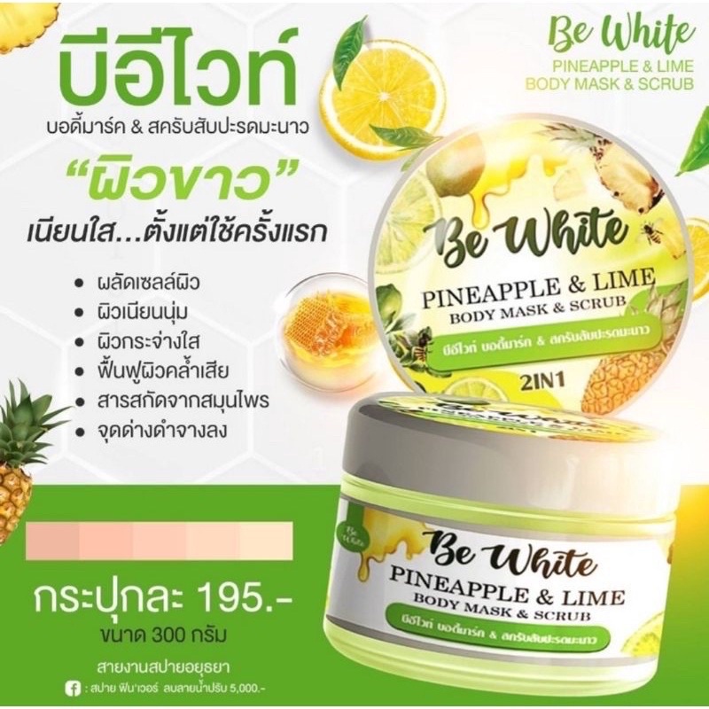 สครับ Be White สัปปะรด&มะนาว 2 in 1 Be White Pineapple&Lime Body Mask &Scrub