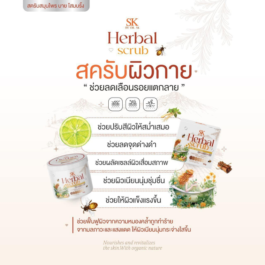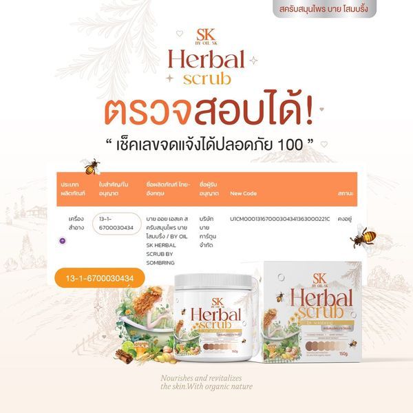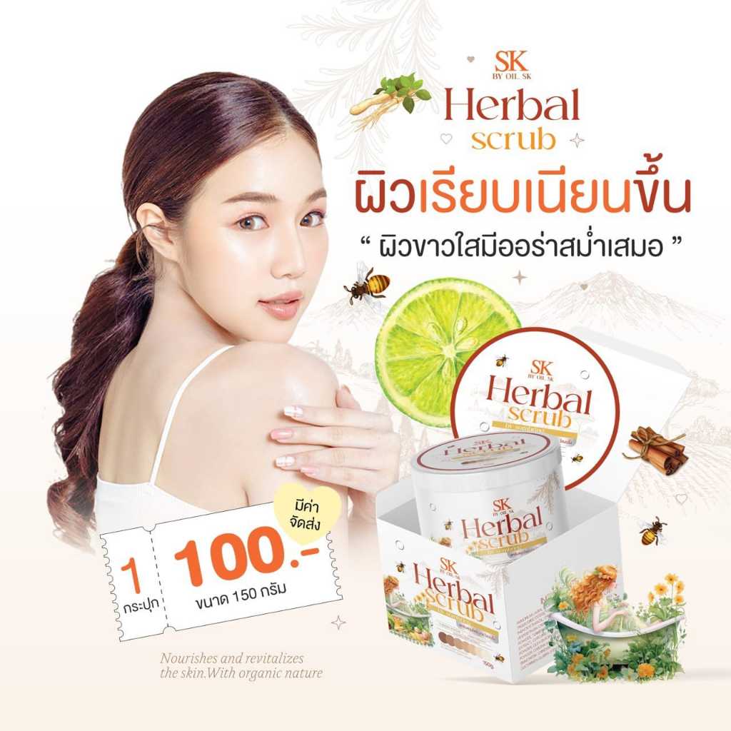สครับสมุนไพรบายโสมบริ้ง SK BY OIL SK สครับโสมบริ้ง อุดมไปด้วยสารสกัดจากธรรมชาติ 150 กรัม