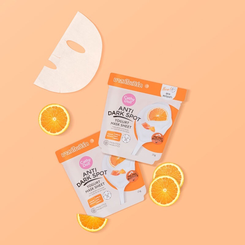 แผ่นมาส์กหน้า โยเกิร์ต【ส้มวิตามินซี】Cathy Doll Anti Dark Spot Yogurt Mask Sheet 25g