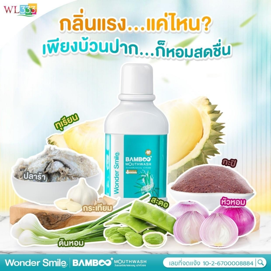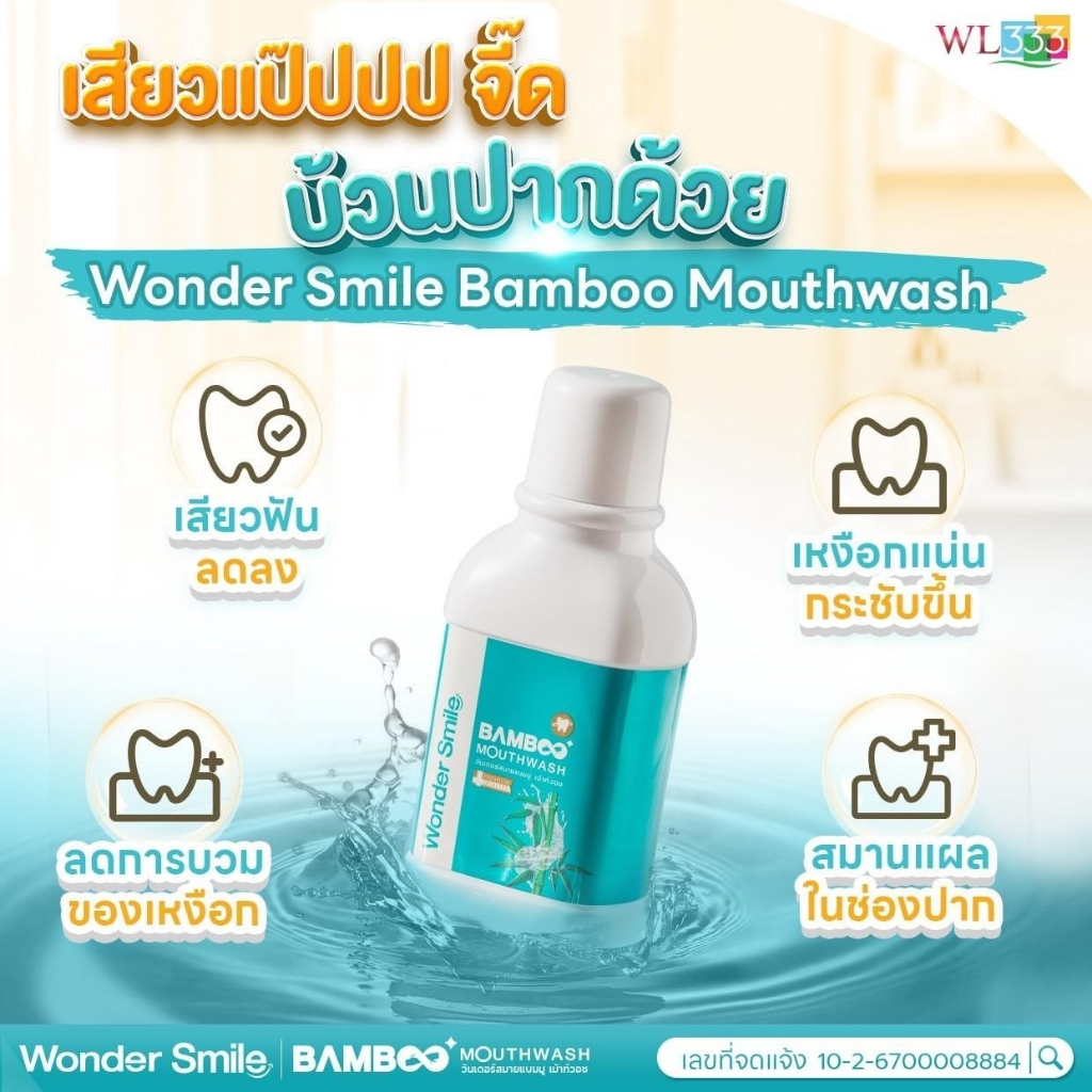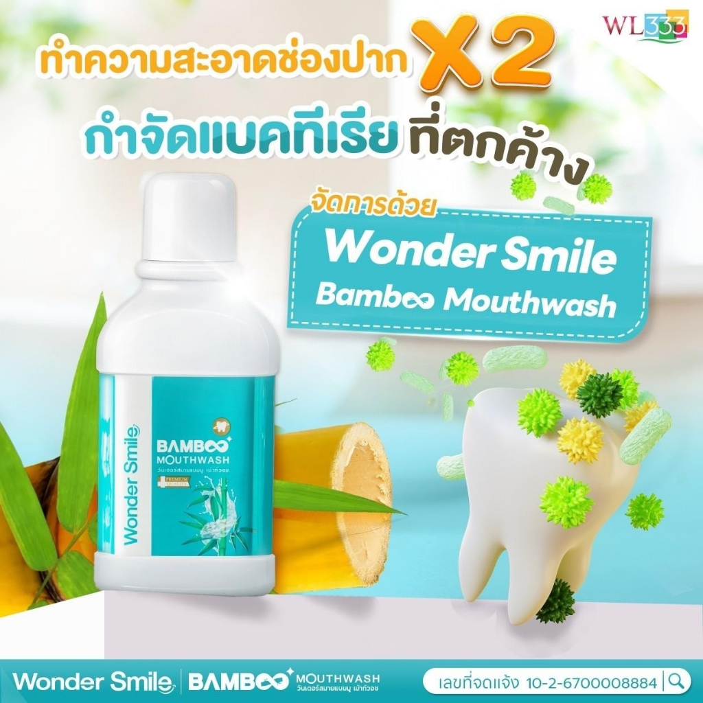 Wonder Smile Bamboo Mouthwash น้ำยาบ้วนปากสูตรสารสกัดจากธรรมชาติ ฟันสวย ยิ้มใส น้ำยาบ้วนปากแบมบู