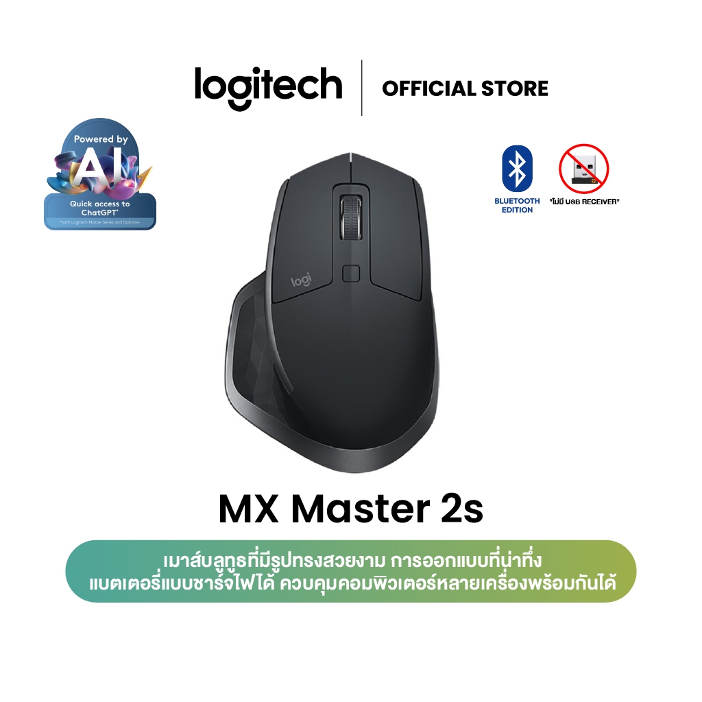 Logitech MX Master 2S Bluetooth Edition เมาส์บลูทูธ ไร้สาย ใช้ได้กับทุกพื้นผิว เชื่อมต่อ MAC,Window ได้ สูงสุด 3 เครื่อง