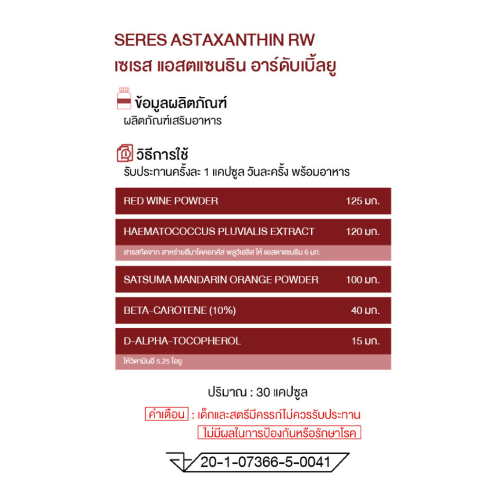 Seres Astaxanthin เซเรส แอสต้าแซนธิ น 6 มก. 30 แคปซูล [PC]