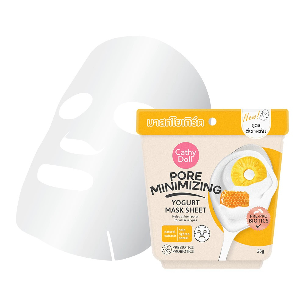 (กล่อง 6 ซอง) Cathy Doll Pore Minimizing (สีเหลือง) มาสก์หน้าโยเกิร์ต (ปริมาณ 25 กรัม)