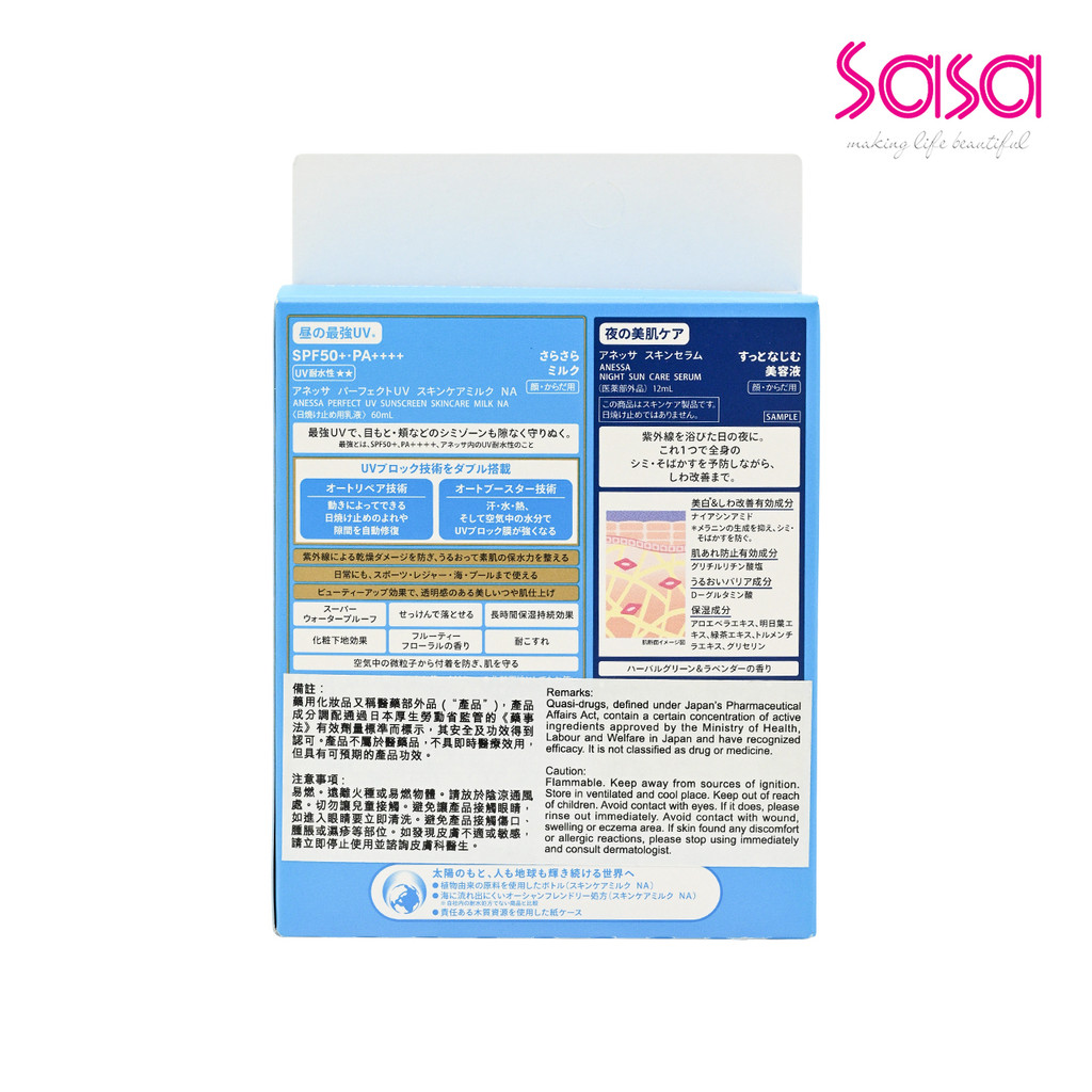 Anessa SPF50+PA++++ Perfect UV Sunscreen Mild Milk & Night Sun Care Serum Limited Set (2pcs)