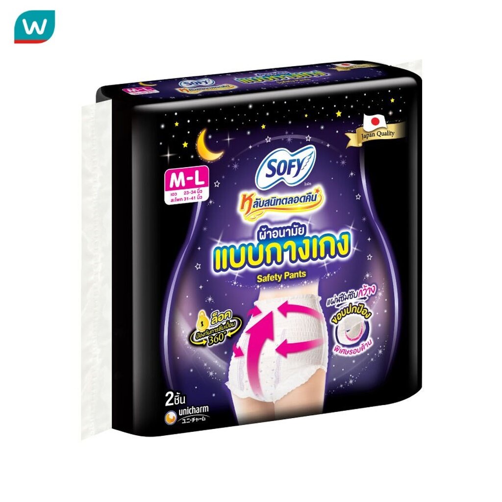 Sofy โซฟี หลับสนิทตลอดคืน ผ้าอนามัย แบบกางเกง เซฟตี้ M-L 2 ชิ้น