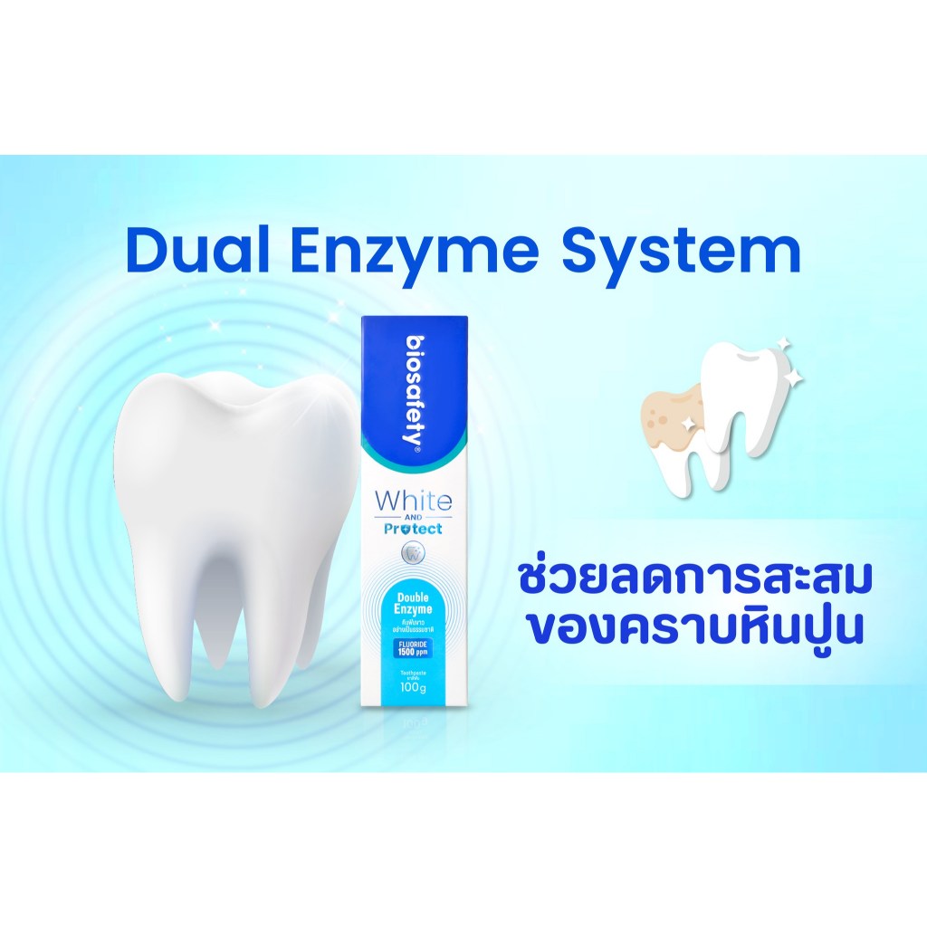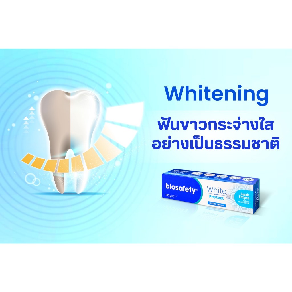 Biosafety ยาสีฟัน ไบโอเซฟตี้ White & Protect ขนาด 100 กรัม ช่วยป้องกันฟันผุ