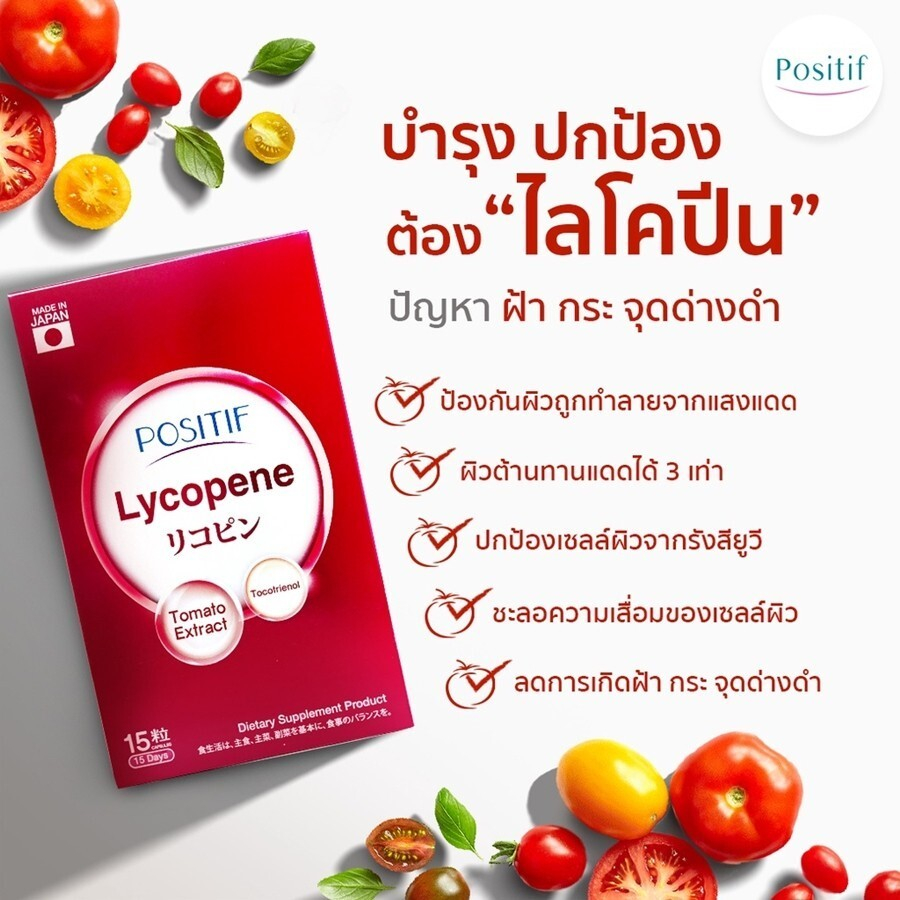 POSITIF Lycopene สารสกัดมะเขือเทศ จากประเทศญี่ปุ่น บรรจุ 15 แคปซูลต่อกล่อง