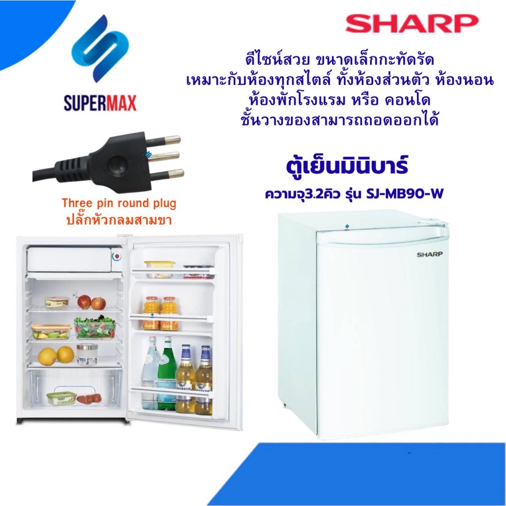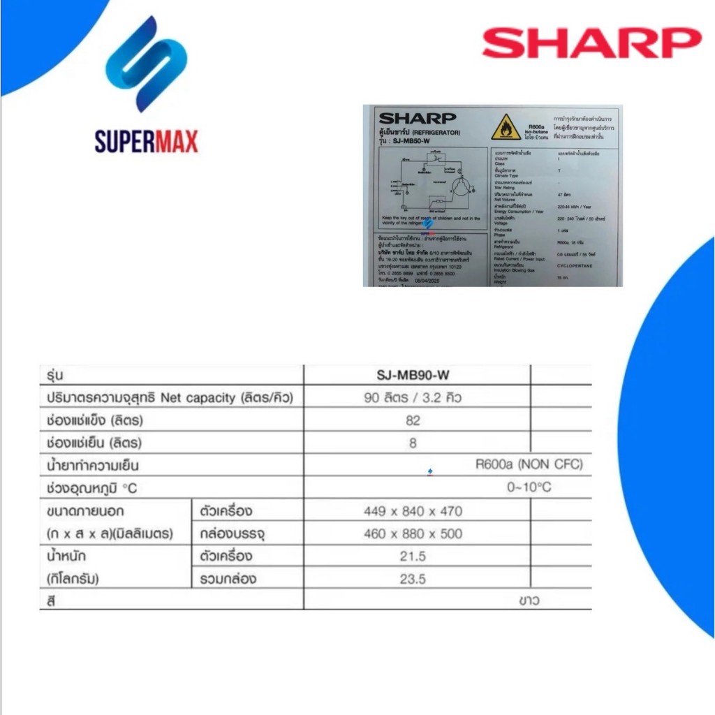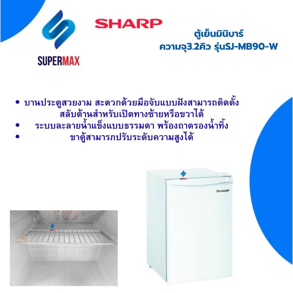 SHARP ตู้เย็นมินิบาร์ 1 ประตู ขนาด 3.2 คิว รุ่น SJ-MB90 สี WHขาว ระบบประหยัดไฟฟ้า รับประกันคอม 5 ปี