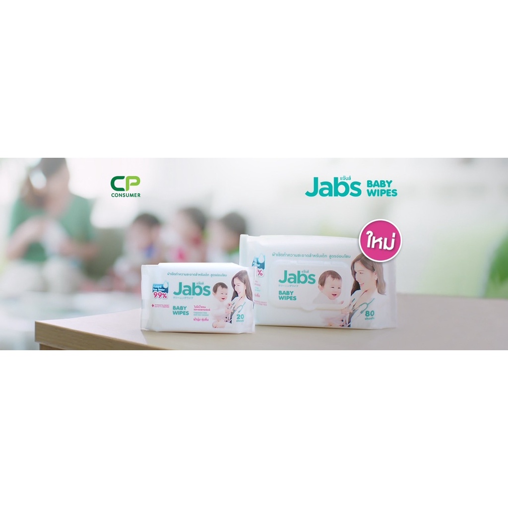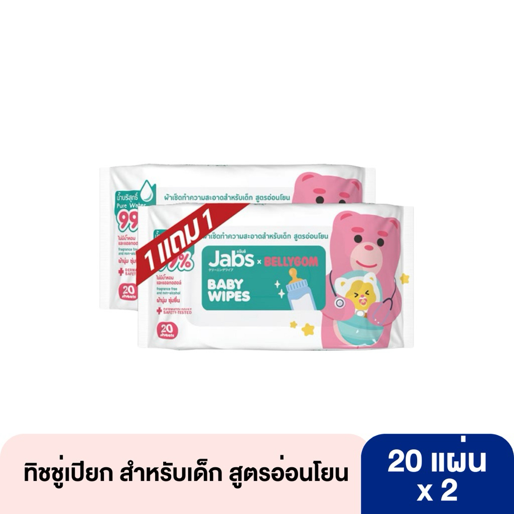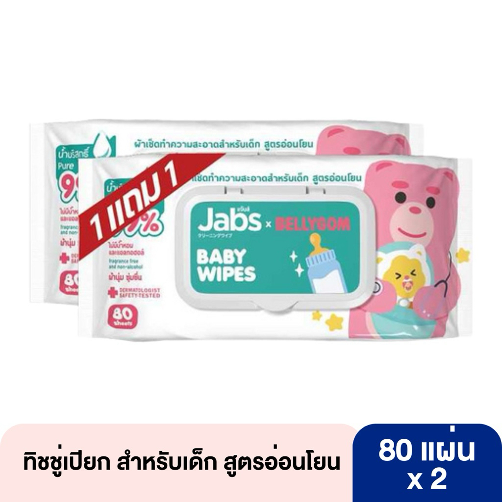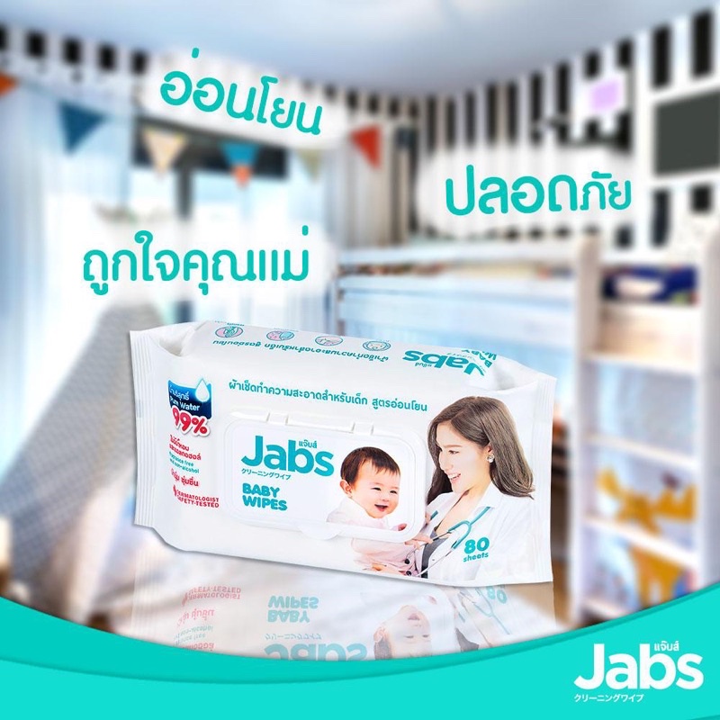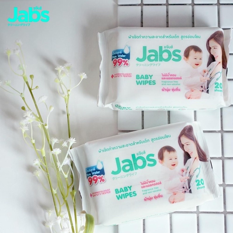 [ห่อสีขาว] Jabs แจ๊บส์ ทิชชู่เปียก สำหรับเด็ก สูตรอ่อนโยน แพ็คคู่ (แพ็คละ20/80แผ่น)