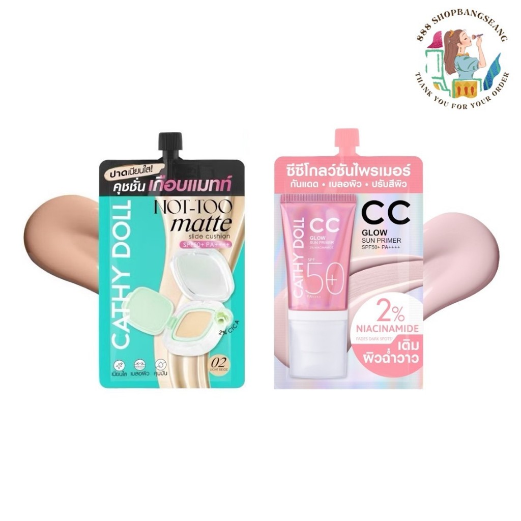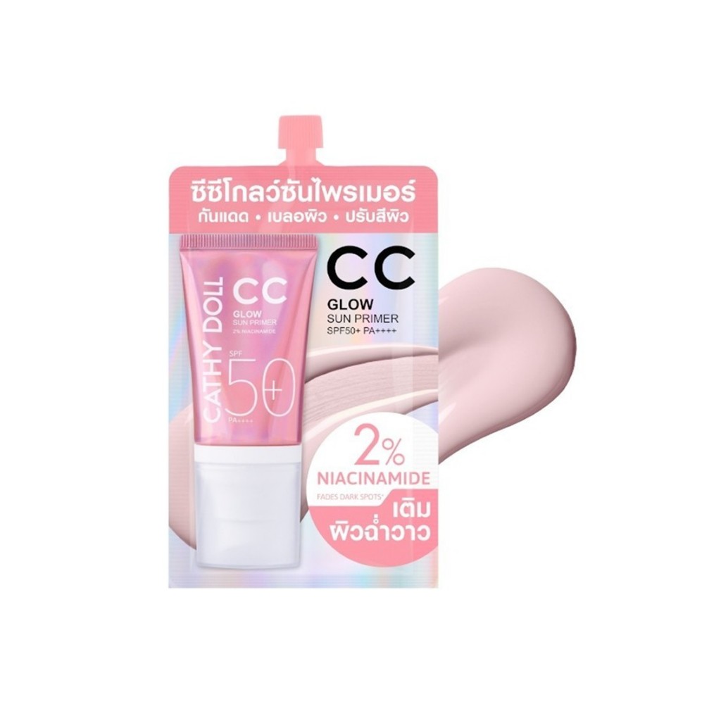 (1ซอง)คุชชั่นซอง Cathy Doll Cushion CC Glow Sun Primer spf50+ pa+++ เคที่ดอลล์ คุชชั่นกันแดดไพรเมอร์