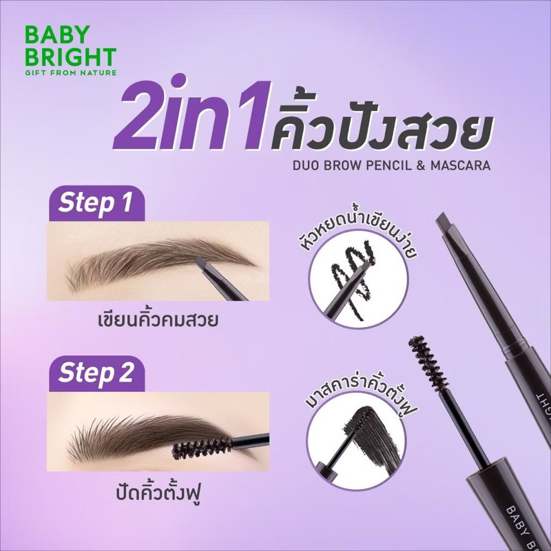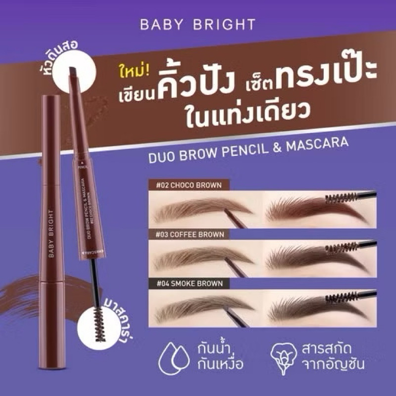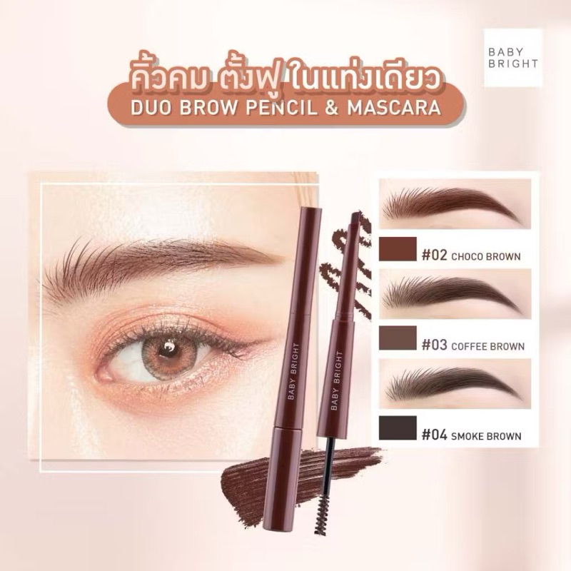 ดินสอเขียนคิ้ว มาสคาร่าคิ้ว เบบี้ ไบร์ท ดูโอ้บราว เพนซิล มาสคาร่า Baby Bright Duo Brow Pencil & Mascara ขนาด0.24+4.8g