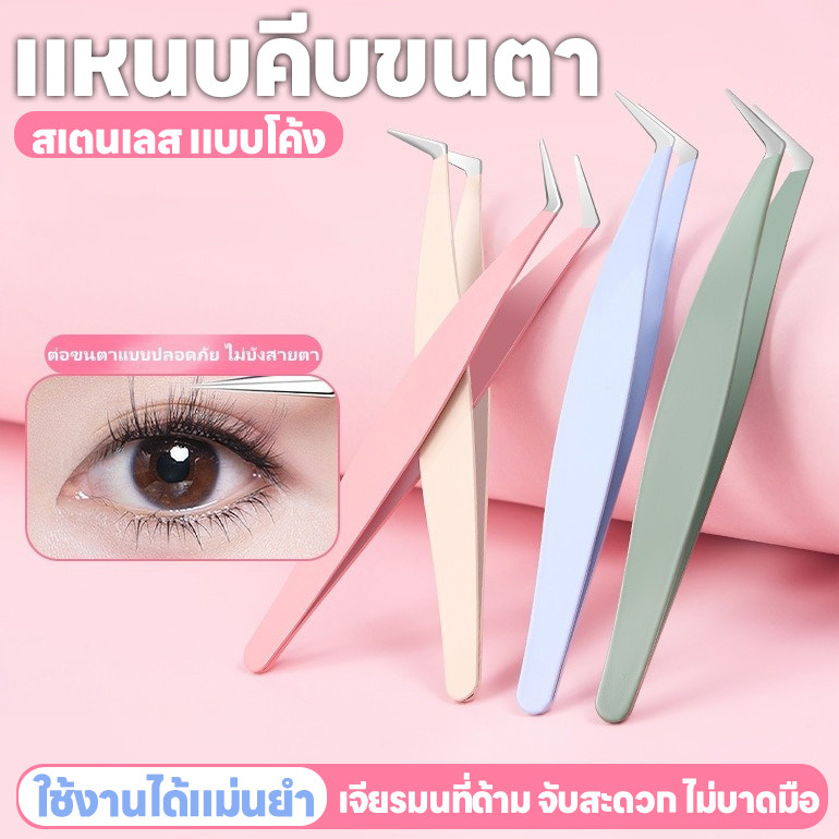 แหนบขนตาปลอม 12ซม. สเตนเลส แหนบงีบแบบปากงอ ปลอดภัย แม่นยํา ป้องกันไฟฟ้าสถิตย์ มีให้เลือก 4สี