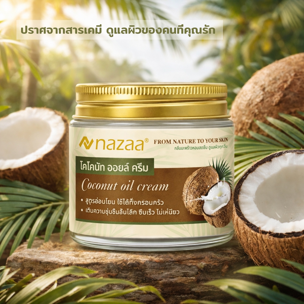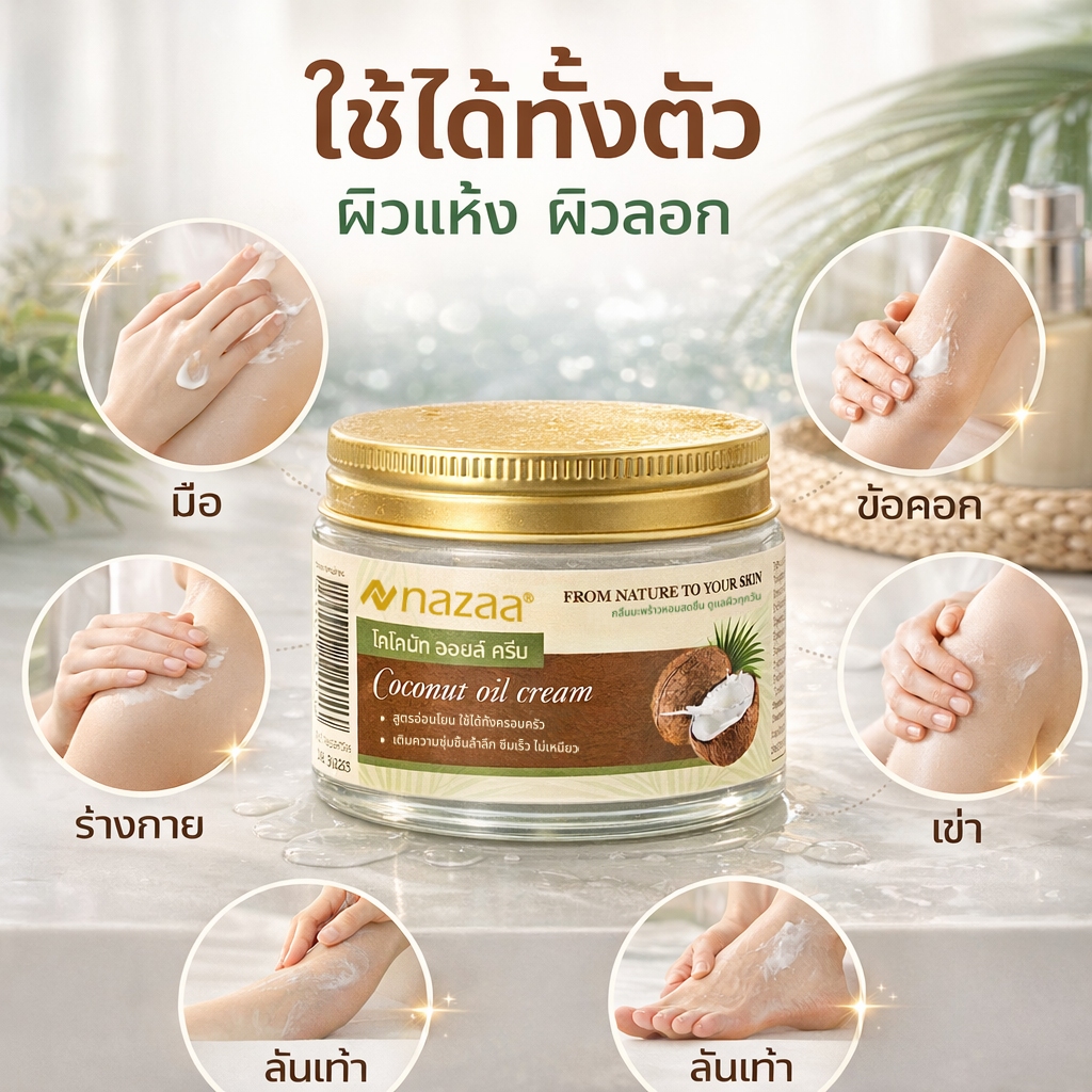 NAZAA Coconut Balm 50g ครีมน้ำมันมะพร้าว ผสม Centella MultiMoist Tocopherol บำรุงผิวแห้งแตก