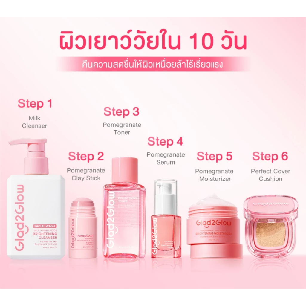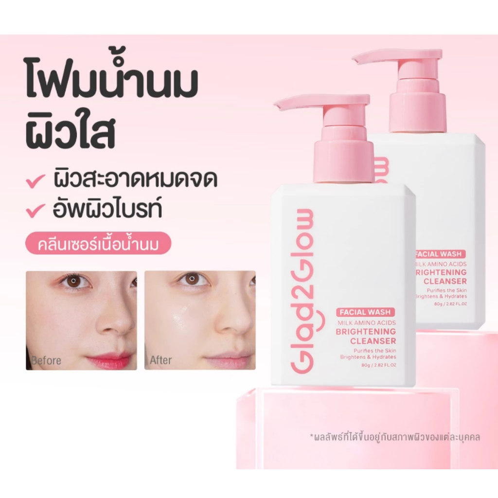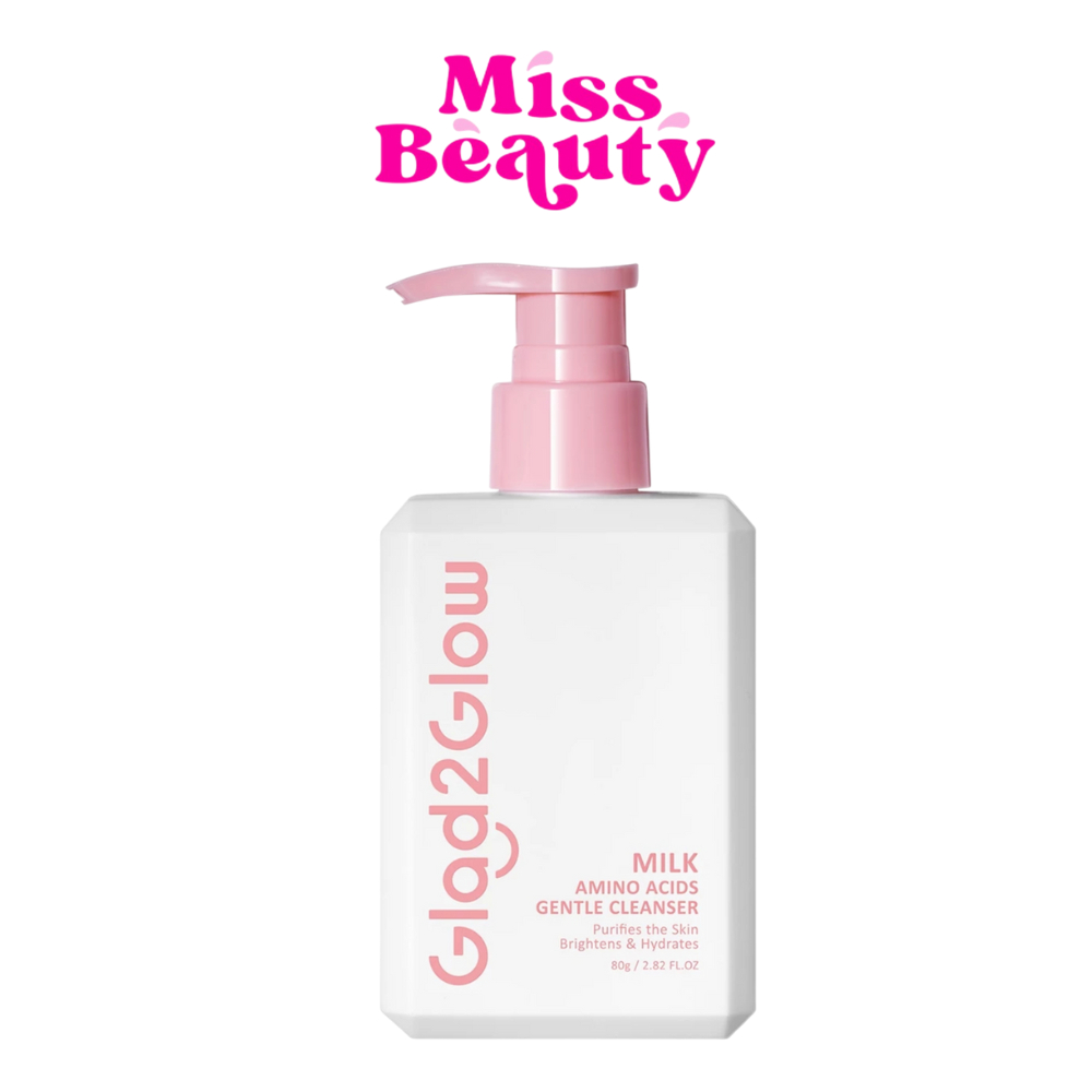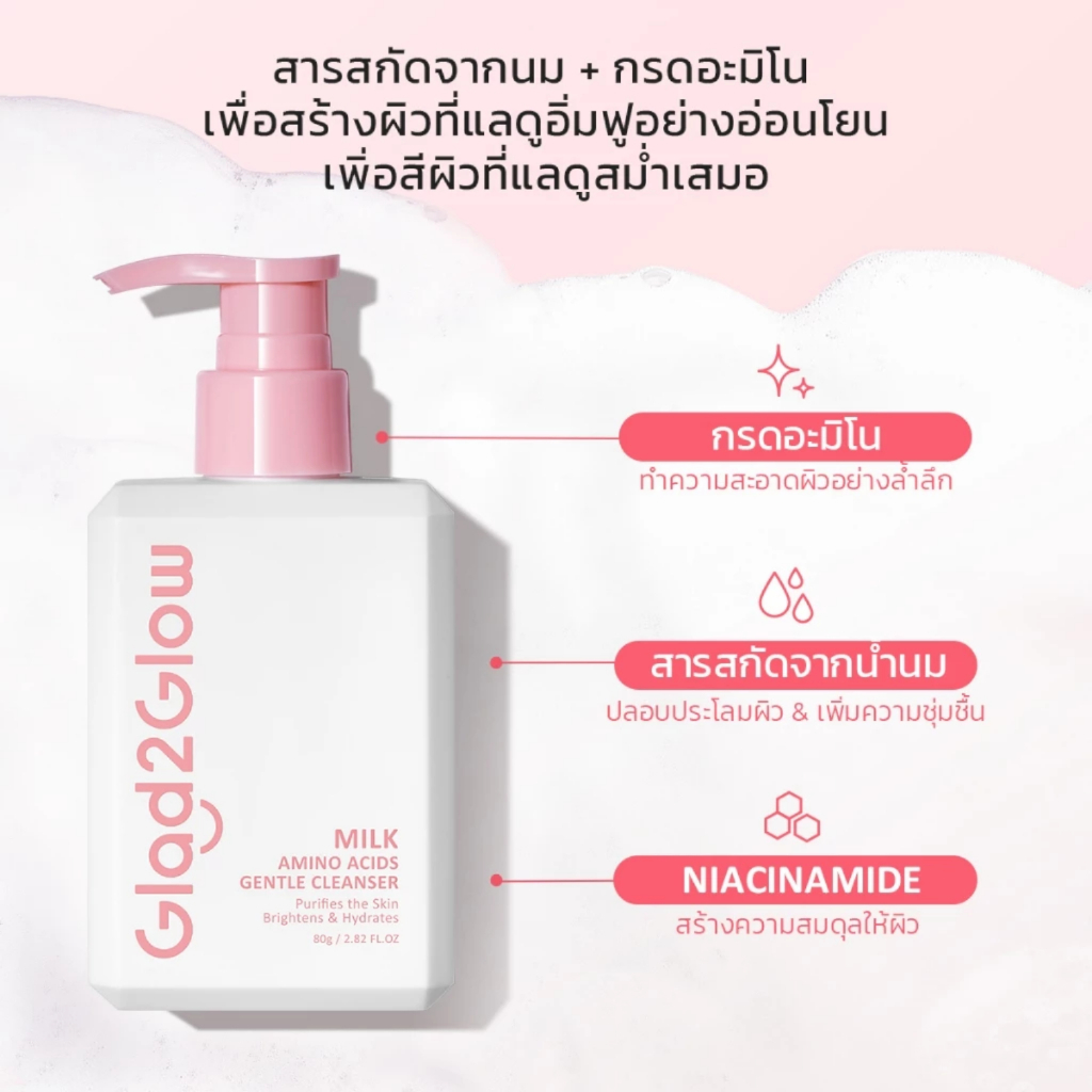 (ขวดปั๊ม) Glad2Glow Milk Amino Acids Brightening Canser แกลดทูโกลว์ มิลค์ อะมิโน แอซิด ไบรท์เทนนิ่ง คลีนเซอร์ 80 กรัม