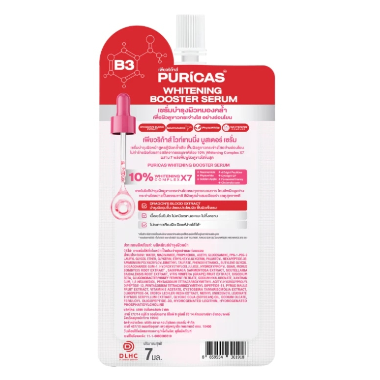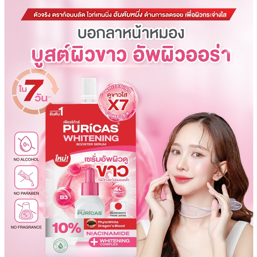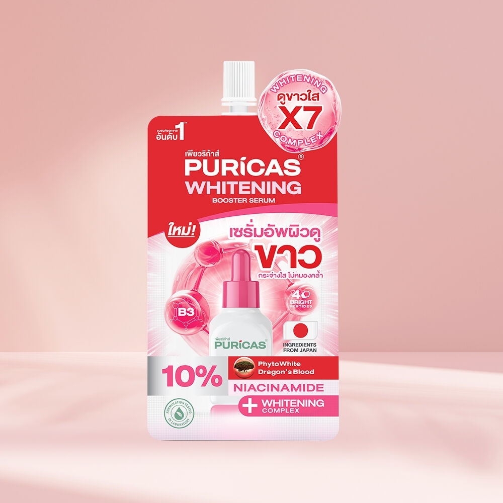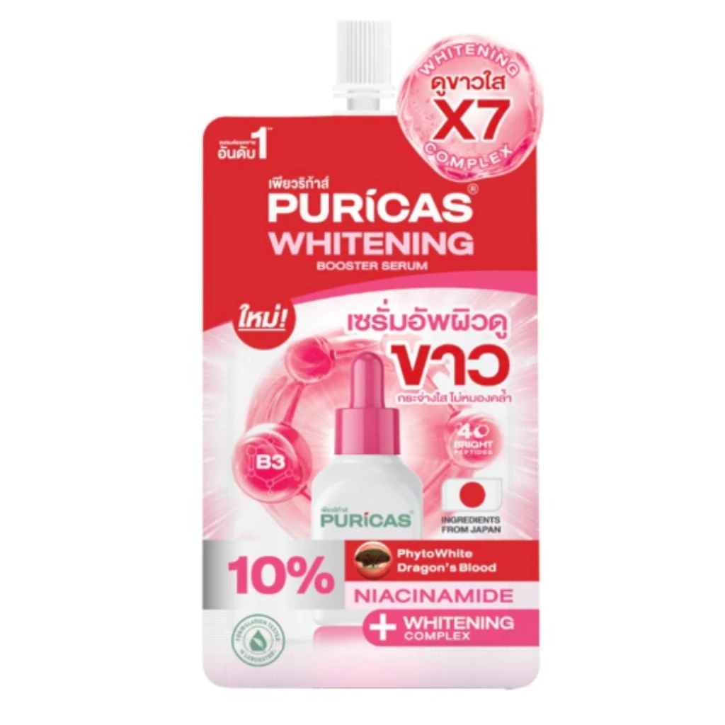 (1 ซอง) Puricas Whitening Booster Serum เพียวริก้า ไวท์เทนนิ่ง บูสเตอร์ เซรั่ม (7 ml.)