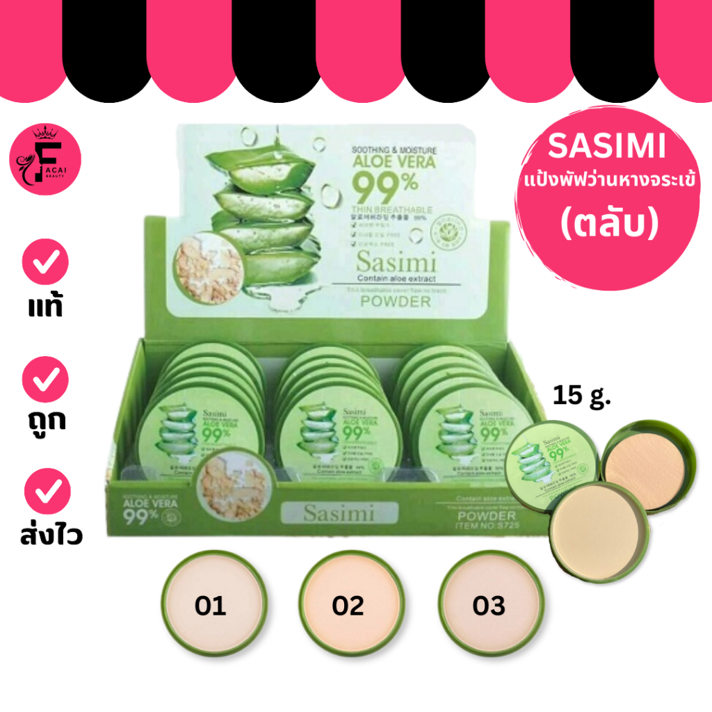 (ตลับ) Sasimi Soothing&Moisture Aloe Vera 99% Powder - ซาซิมิแป้งพัฟว่านหางจระเข้ 99% ฝาทึบ (15 g.)
