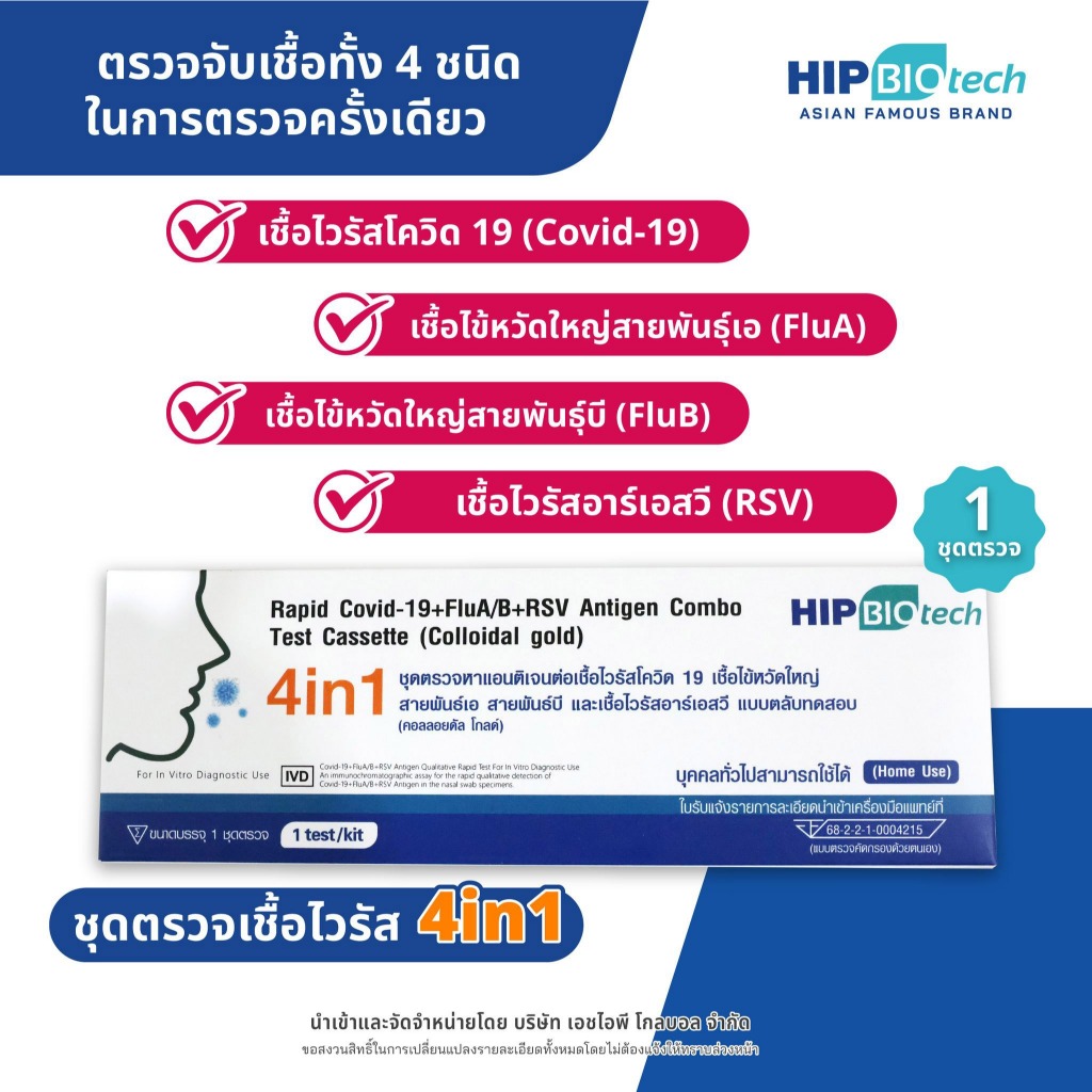 Hip Biotech 4in1 ATK Covid19, Flu A/B, RSV Antigen Combo [Nasal Swap] ตรวจโควิด19 ไข้หวัดใหญ่