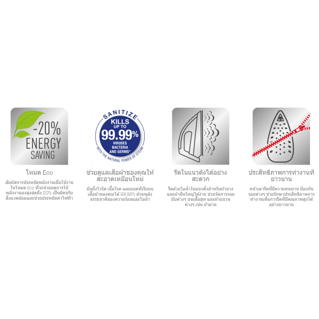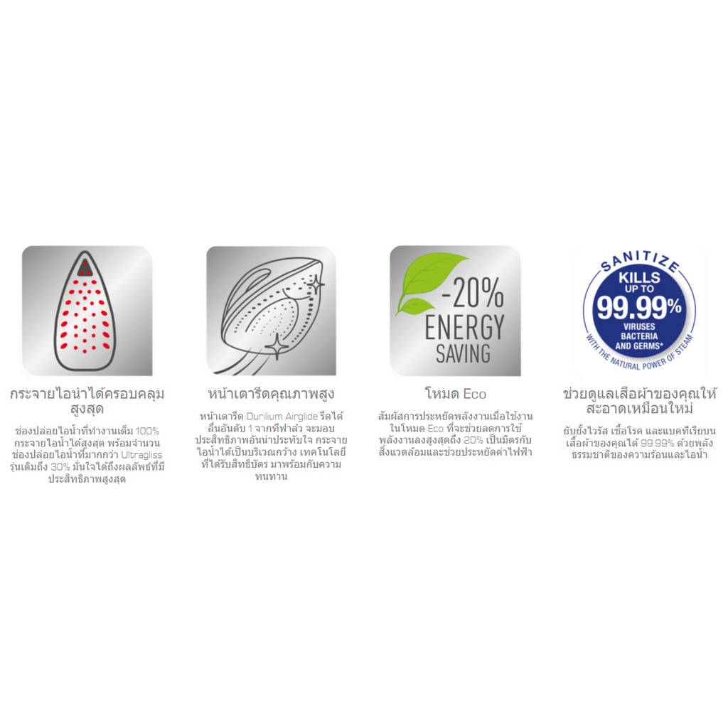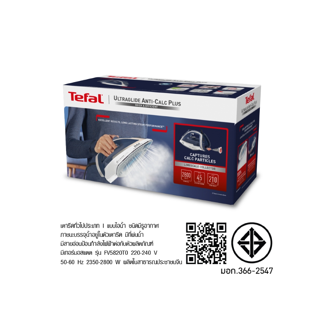 TEFAL เตารีดไอน้ำ Steam Iron Ultraglide Plus รุ่น FV5820T0 กำลังไฟ 2,800 วัตต์