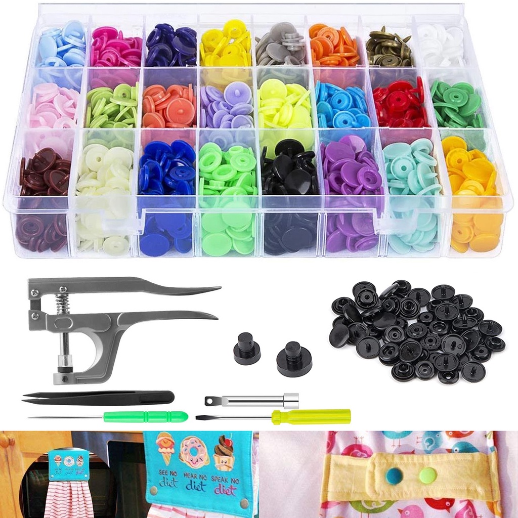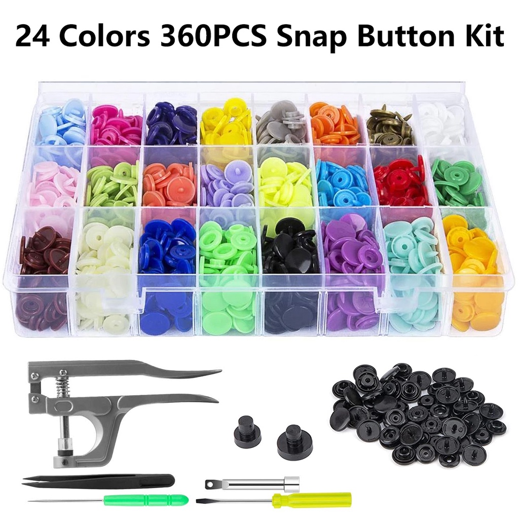 364pcs Snap Button Kit w/24 Colors Sewing Fasteners Snaps Plastic Snaps Crafting Sewing and Tool Set