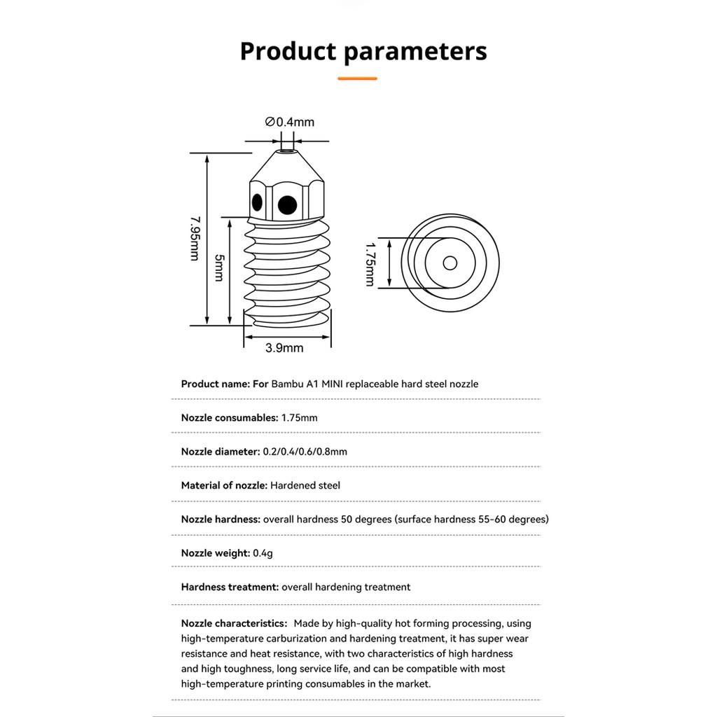 3D Printer Part Hardened Steel Nozzle For Bambu Lab A1 Mini