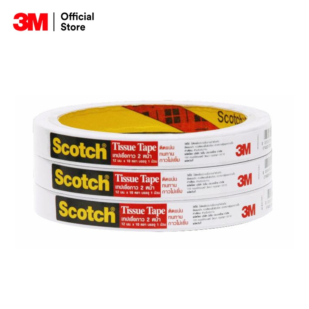 3M™ Scotch® สก๊อตช์ เทปกาว 2 หน้า, ใช้งานได้หลายพื้นผิว, แพ็ค 3, 12 มม. X 10 หลา