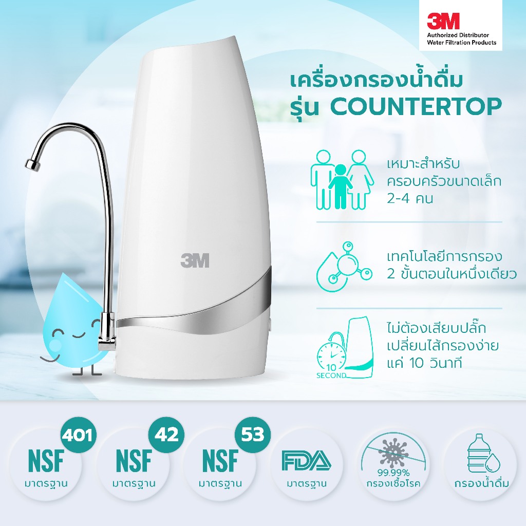 ส่งด่วน⚡ 3M เครื่องกรองน้ำตั้งโต๊ะรุ่น Countertop เครื่องกรองน้ำตั้งโต๊ะ เครื่องกรองน้ำติดหัวก็อกน้ำ / NSF 42,53,401