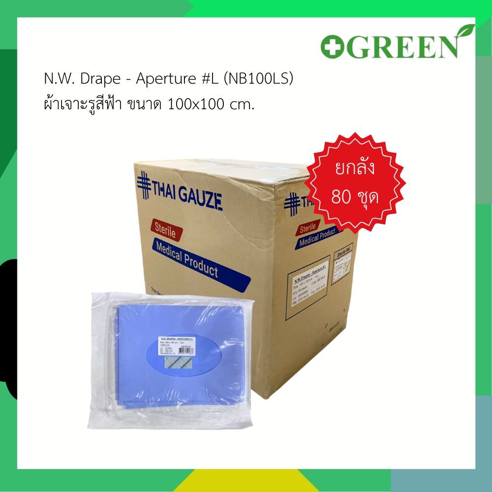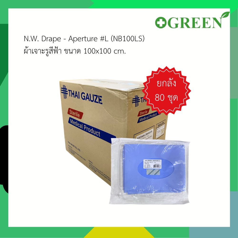 (ยกลัง) ผ้าเจาะรูสีฟ้า N.W. Drape - Aperture (NB100LS) ขนาด 100X100CM ใช้แล้วทิ้ง THAI GAUZE