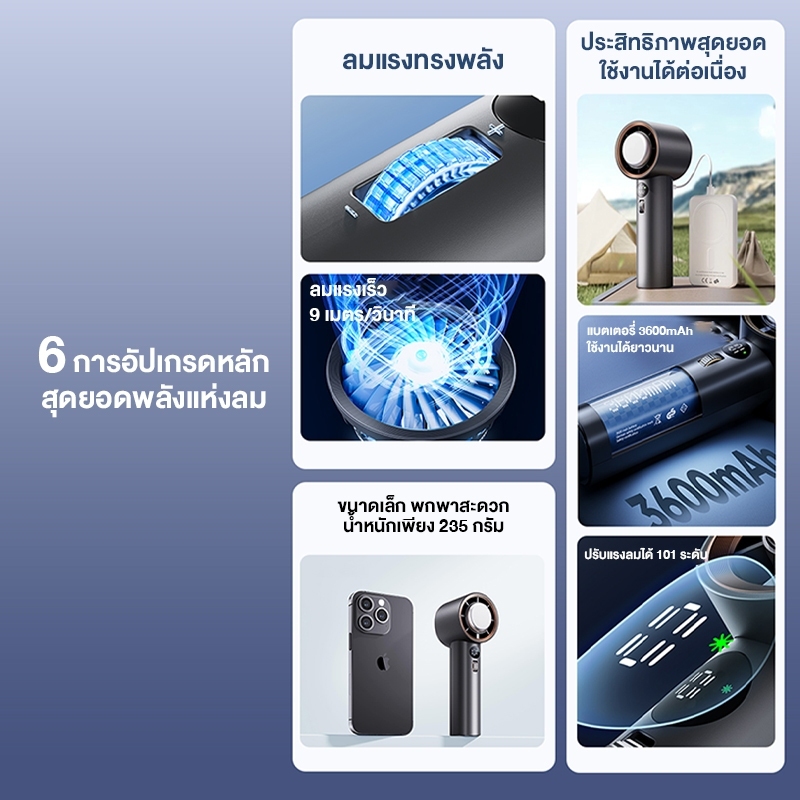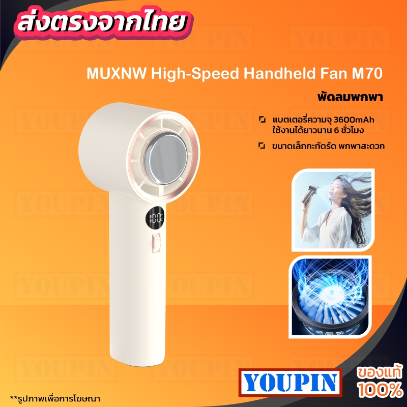 MUXNW M70 High Speed Handheld Fan-Engine Slim พัดลมพกพา, ขนาดเล็ก, ความเร็วสูง ความแรงลม 100 Level 3600mAh