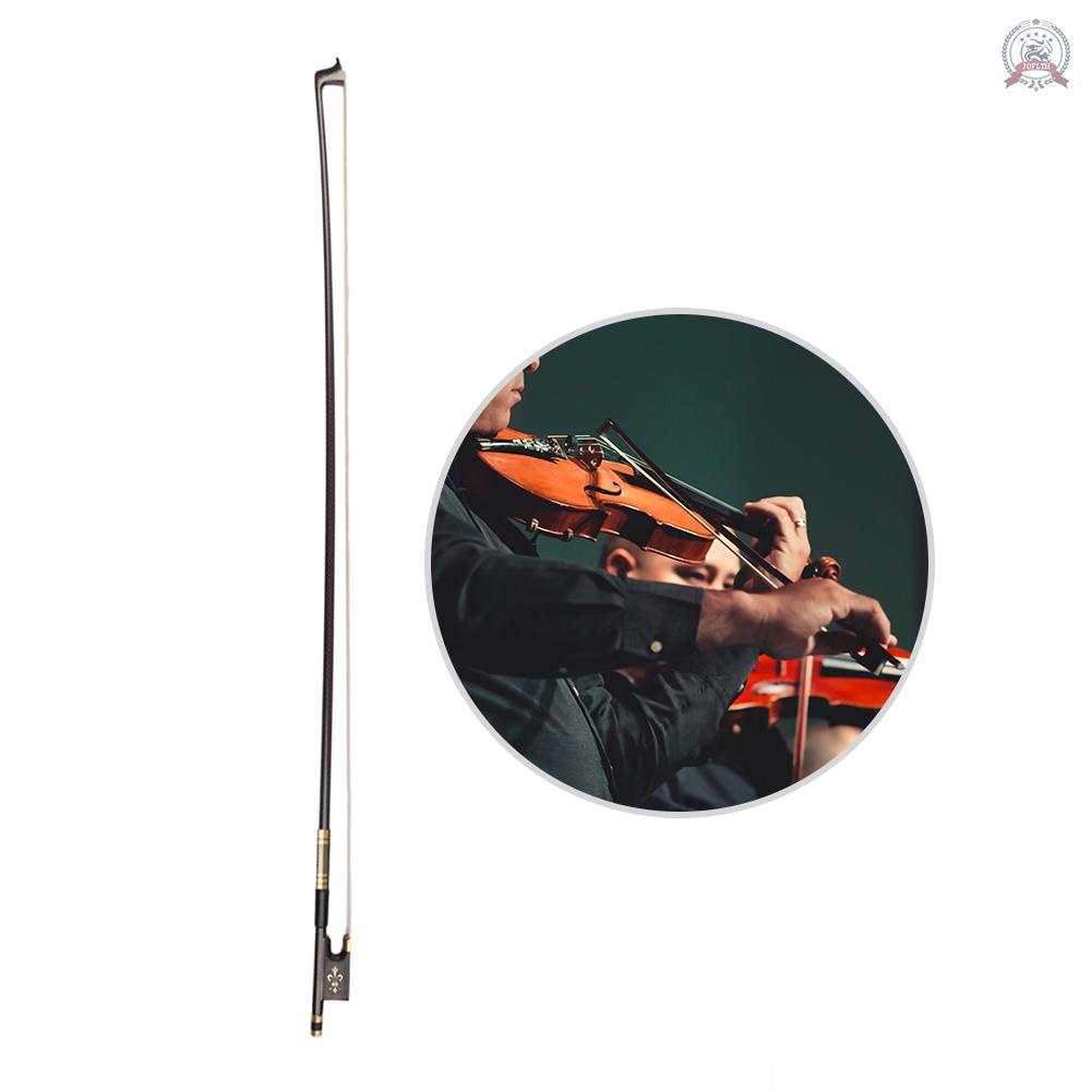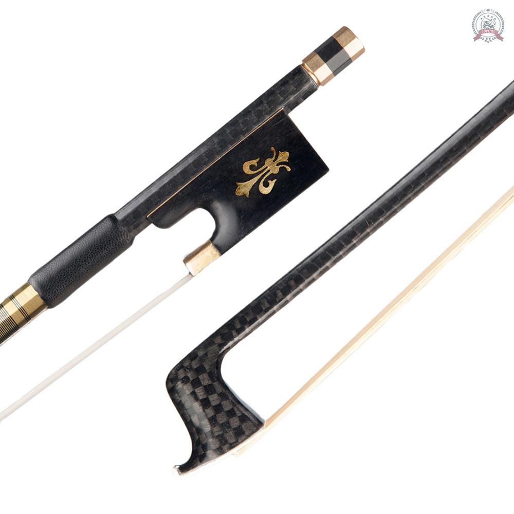 4/4 Violin Fiddle Bow Carbon Fiber Round Stick Ebony Frog Horsetail Hair Well Balanced