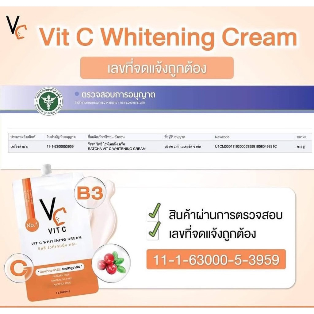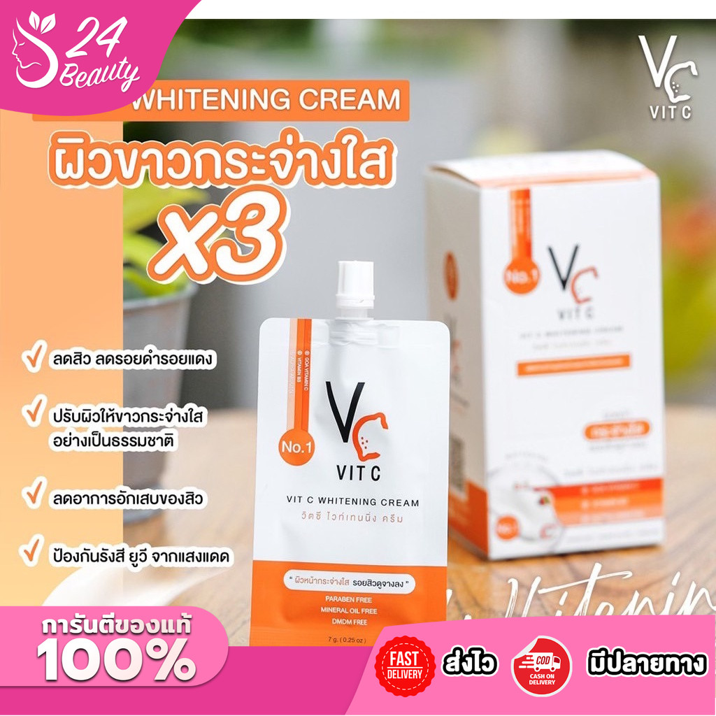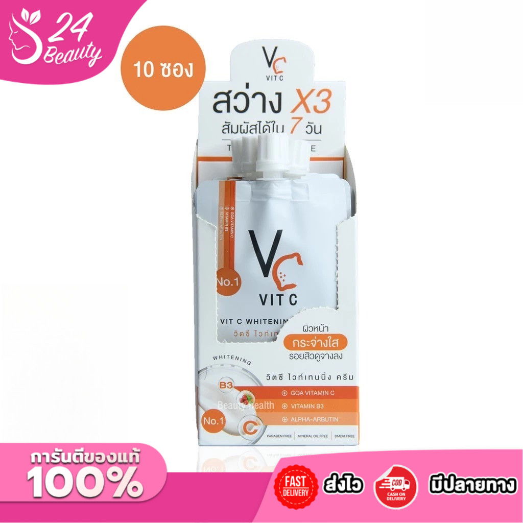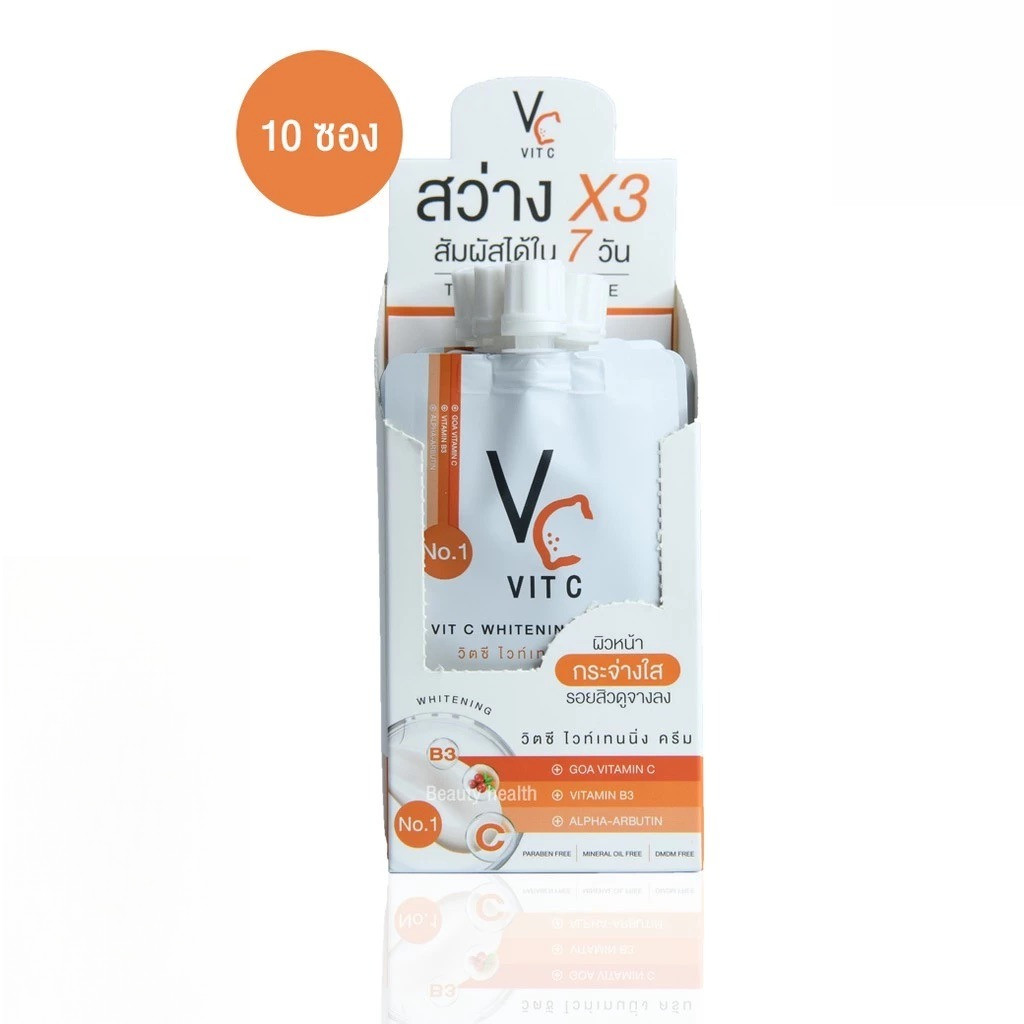 (ยกกล่อง 10 ซอง) VC Vit C Whitening Cream วิตซี ไวท์เทนนิ่ง ครีม 7 g.ครีม