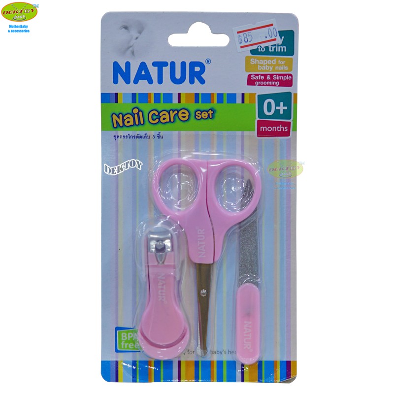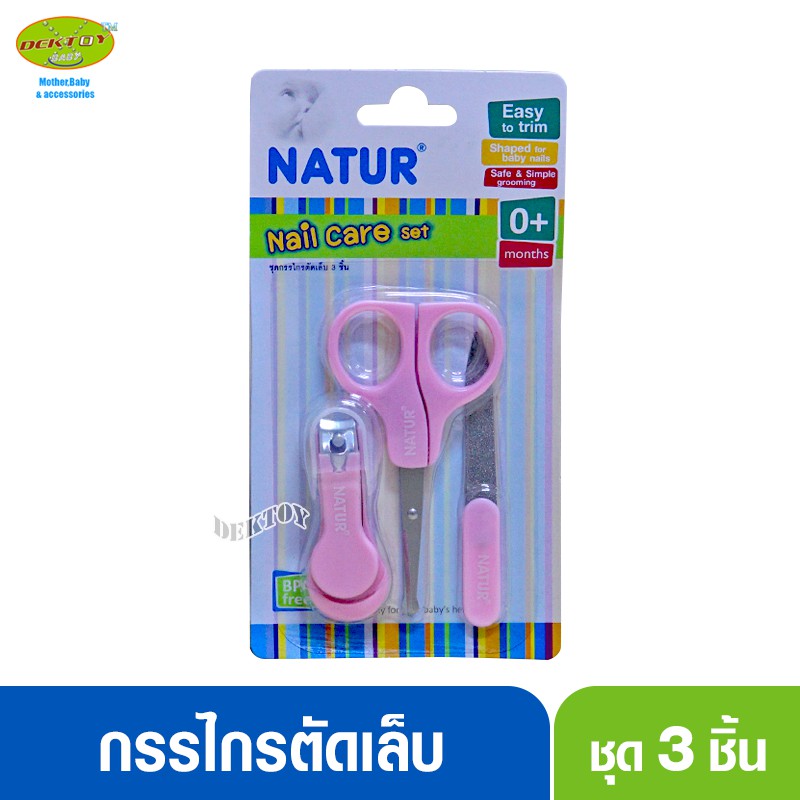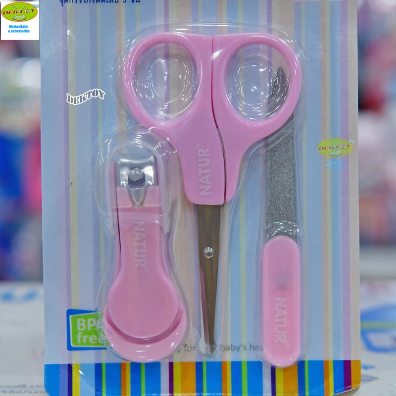 NATUR เนเจอร์ กรรไกรตัดเล็บเด็กทารกเนเจอร์แพ็ค 3 ชิ้น สีชมพู