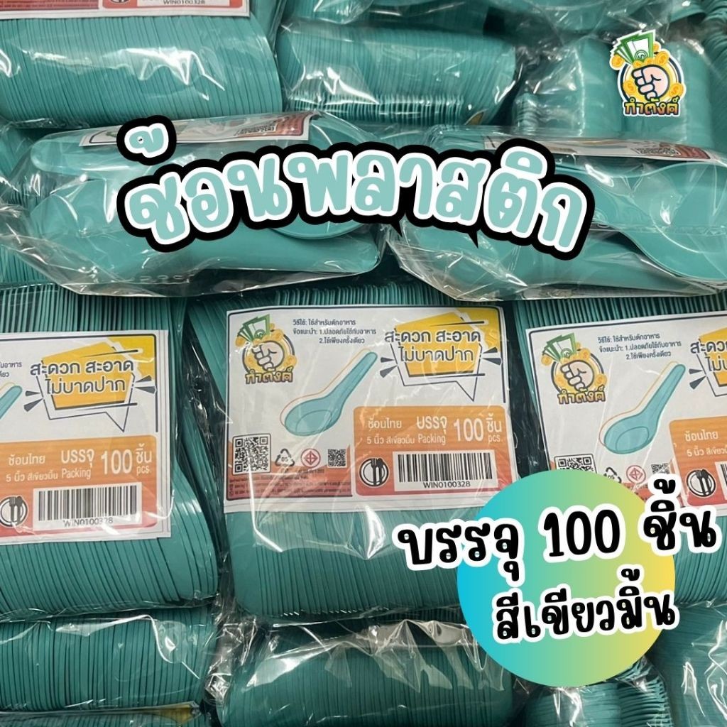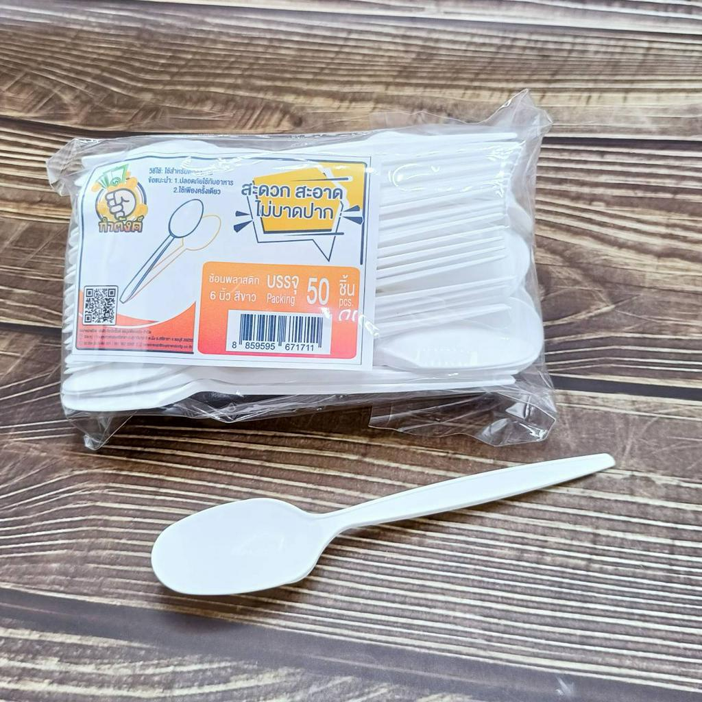 (แพ็ค 100 ชิ้น)ช้อนสั้นพลาสติก ช้อนขนมหวาน ช้อนยาว/ส้อมยาว 5-6นิ้ว