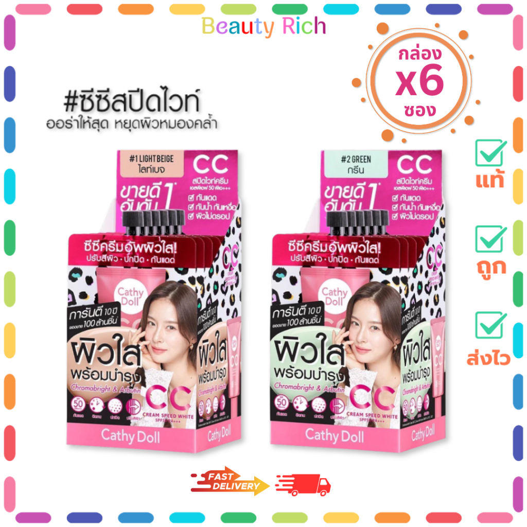 (กล่อง 6 ซอง) Cathy Doll ซีซีครีม SPF50 PA+++ มี 2 เฉดสีให้เลือก (ปริมาณ 7 ml.)
