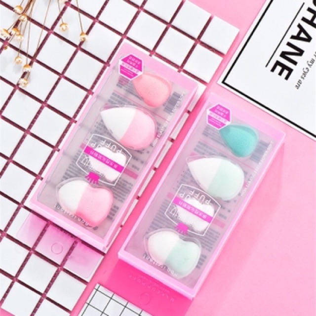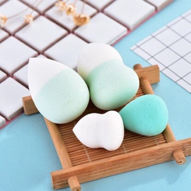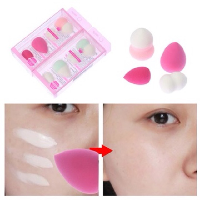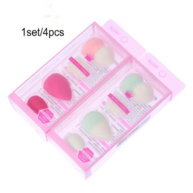 Box Set พัฟฟองน้ำไข่+พัฟฟองน้ำทรงหยดน้ำ 4 ชิ้น 2 ขนาด