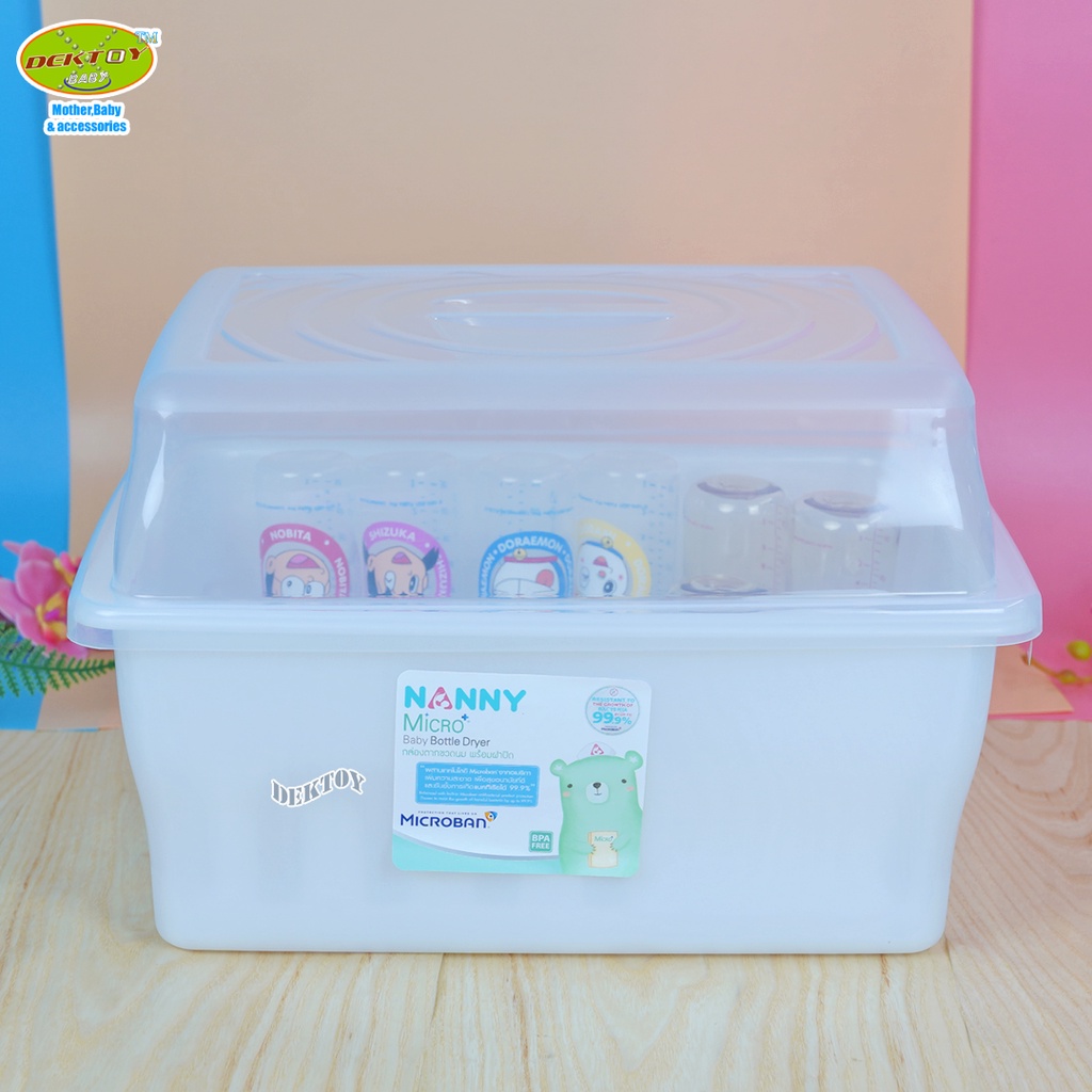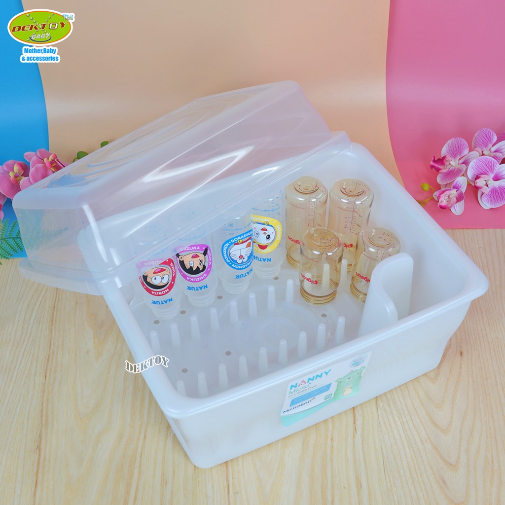 Nanny แนนนี่ กล่องเก็บขวดนม ที่คว่ำขวดนมขนาดใหญ่ ฝาปิด มี Microban ป ้องกันแบคทีเรีย 99.9% (N3837MB)